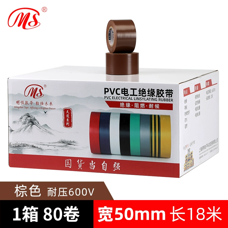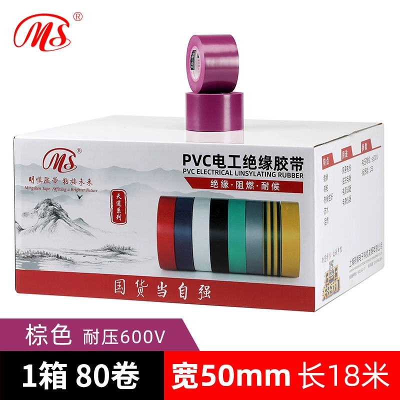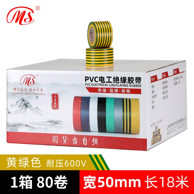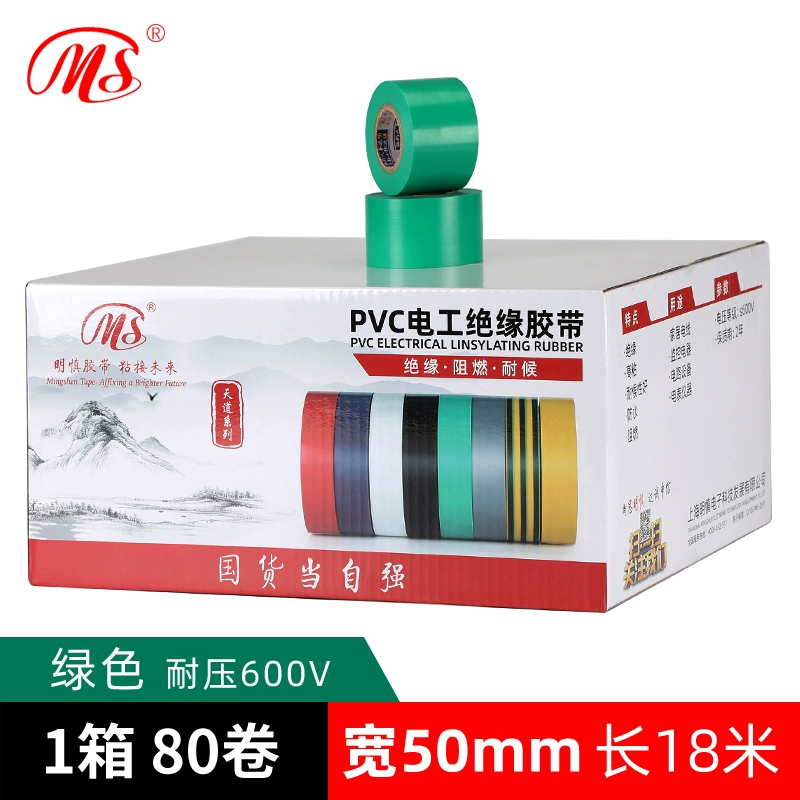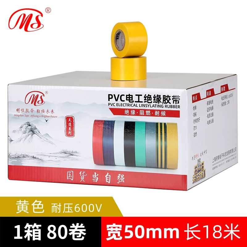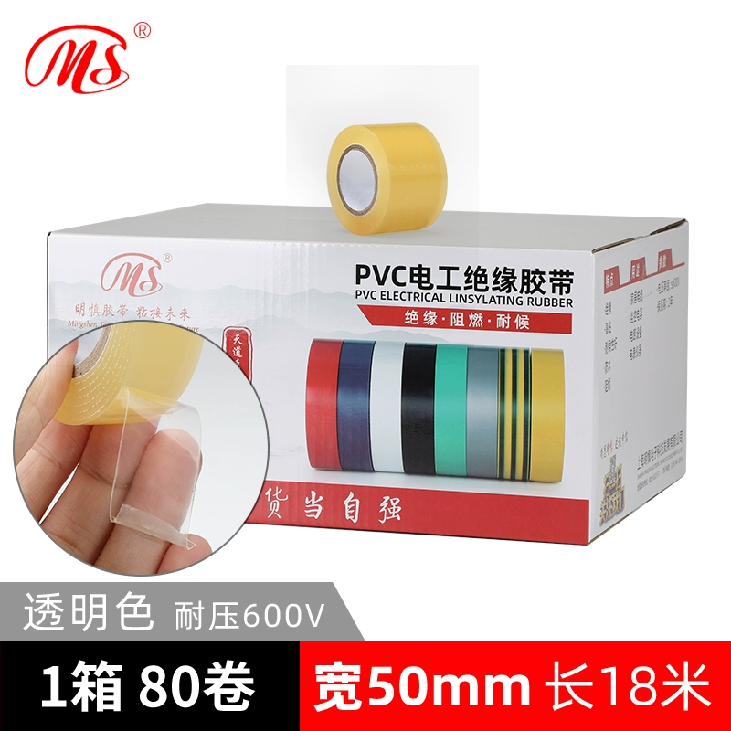 | nameOriginal | MS quality wide electrical PVC tape safety insulating tape 5cm (50mm wide 18 meters long yellow green brown silver gray purple transparent color multi-color high bonding wire tape pressure resistance 600V |