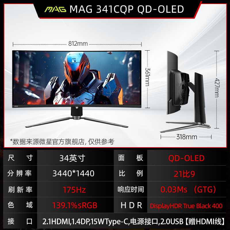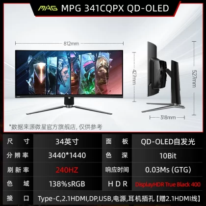 | nameOriginal | MSI 34-inch quasi-4K desktop computer MAG341CQP QD-OLED curved monitor 175hz fish screen |
