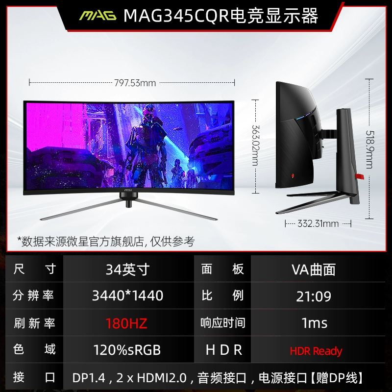 | nameOriginal | MSI 34-inch quasi-4K e-sports 180HZ fish screen computer monitor curved MAG345CQR desktop 144 |