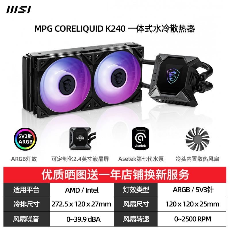 | nameOriginal | MSI K360/K240 integrated water-cooled CPU radiator DIY computer host chassis ARGB light fan |