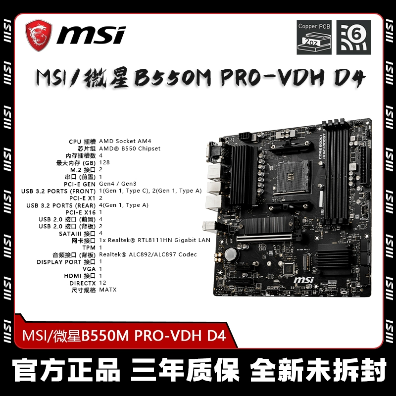 | nameOriginal | MSI motherboard AMD desktop B550M PRO-VDH DDR4 MATX motherboard brand new unopened |