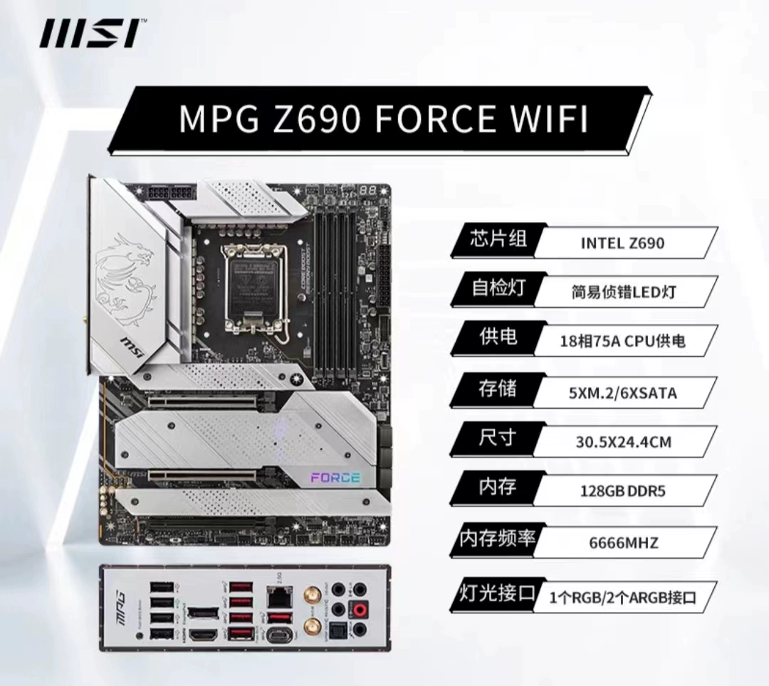 | nameOriginal | MSI MPG Z690 FORCE WIFI 1700 motherboard supports 12th/13th generation CPU and 5th generation memory sticks |