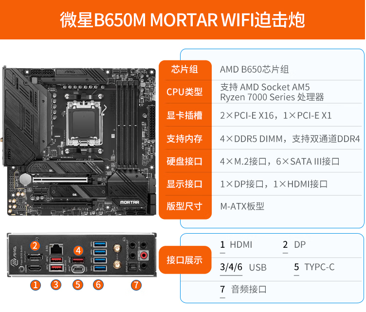 | nameOriginal | MSI/MSI MAG B650M MORTAR WIFI mortar new AM5 motherboard supports AMD7900X |