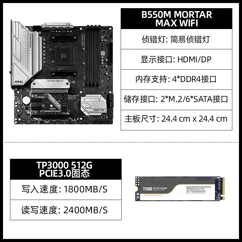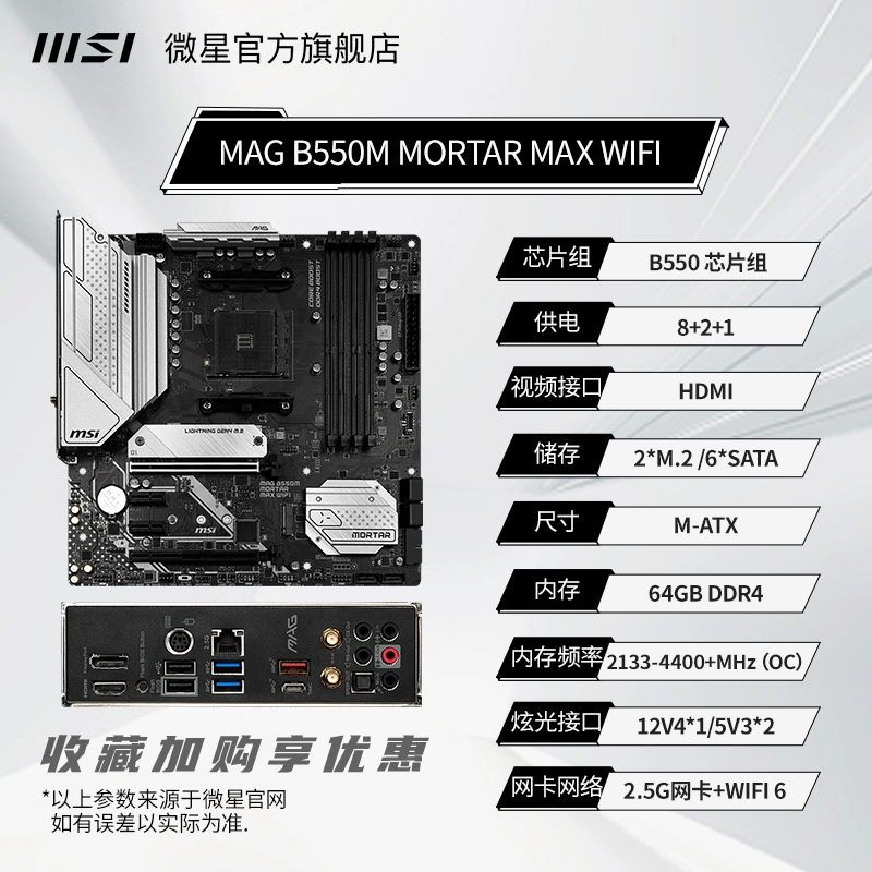 | nameOriginal | MSI/MSI official B550M MORTAR MAX WIFI mortar series desktop computer motherboard set |