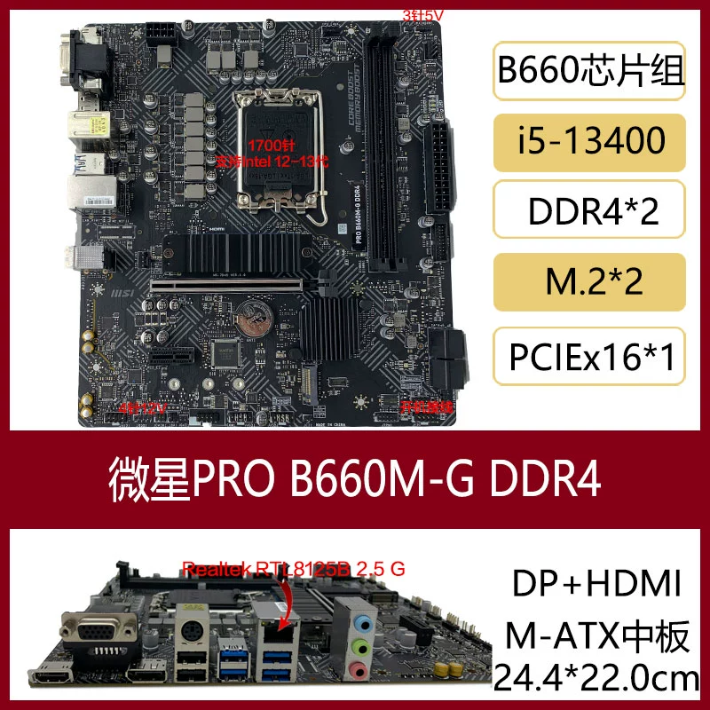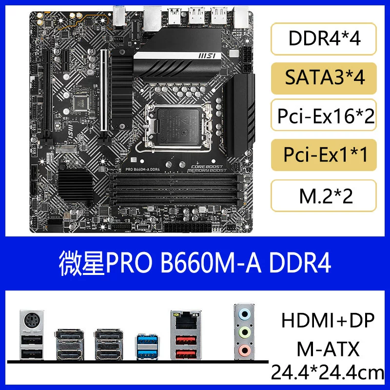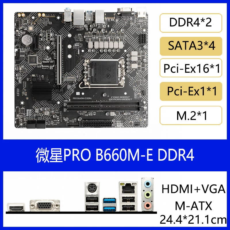 | nameOriginal | MSI/MSI PRO B660M-E-B-P-G-A WIFI DDR4 motherboard 1700-pin 12th generation i5-12600 |