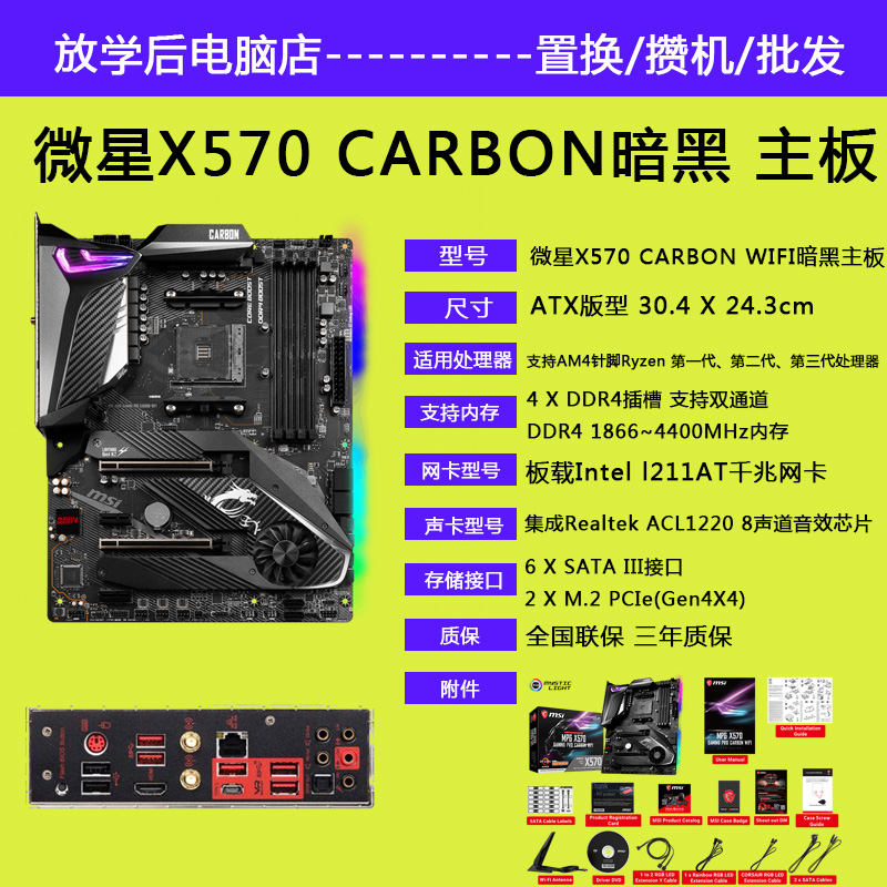 | nameOriginal | MSI X570 GAMING PRO CARBON Dark WIFI computer motherboard 5700X3D 5800X3D |