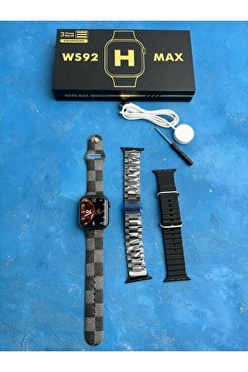WATCH 8 WS92 MAX ULTRA BLACK CASE 3 CORD BLACK IRON, OCEAN, PLASTIC CORD STRAPS. IOS AND ANDRIOD ARE COMPATIBLE. IOS AND ANDROID ARE COMPATIBLE WITH ALL DEVICES.