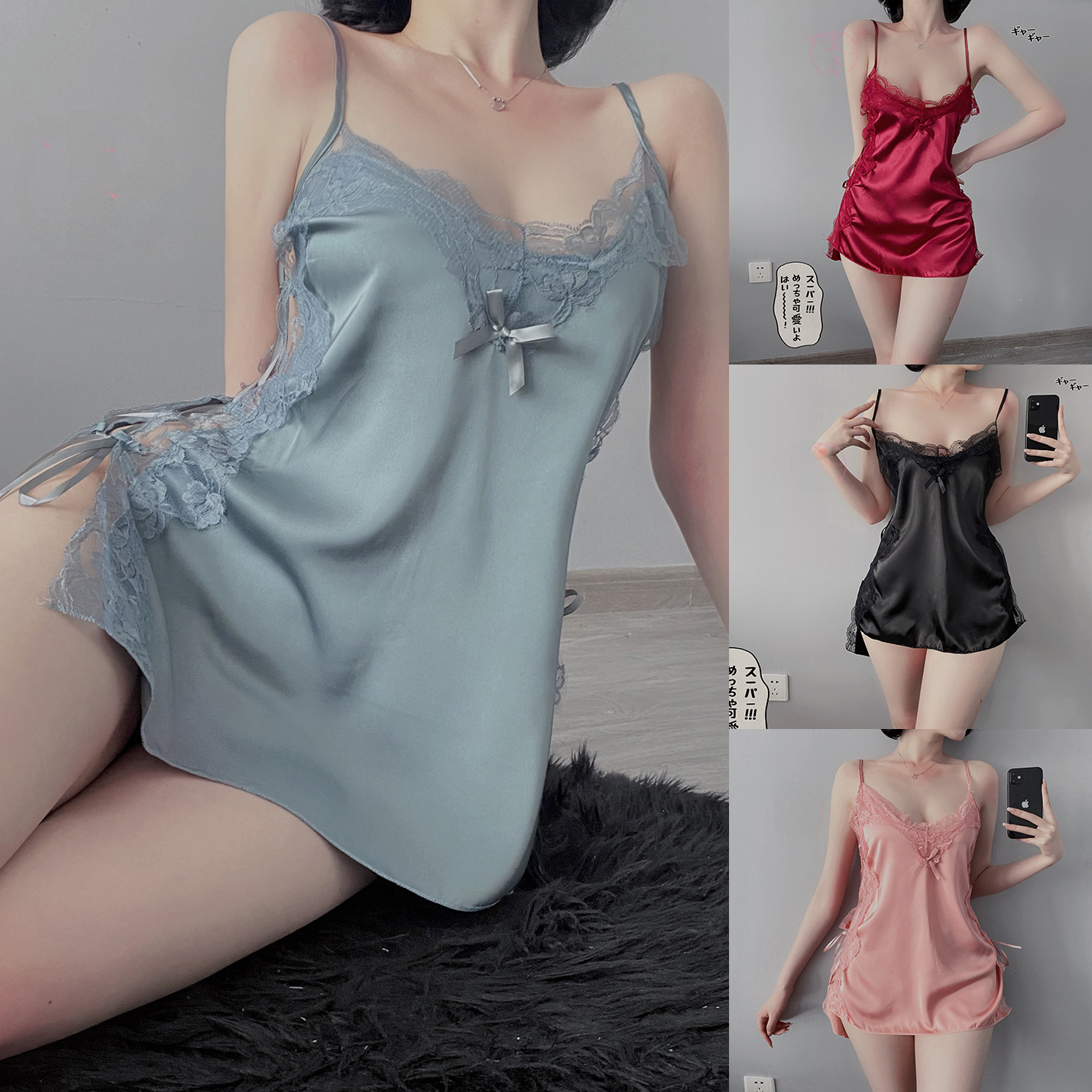 | nameOriginal | Mu Love Sexy Underwear Split Strap Hollow Sexy Nightgown Satin Chiffon Temptation Skirt Lace Set |