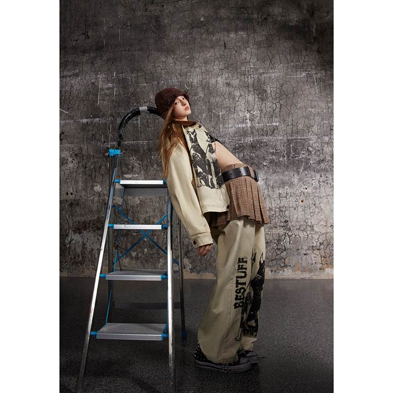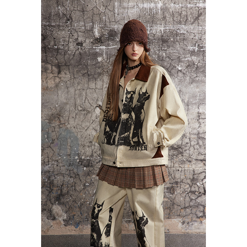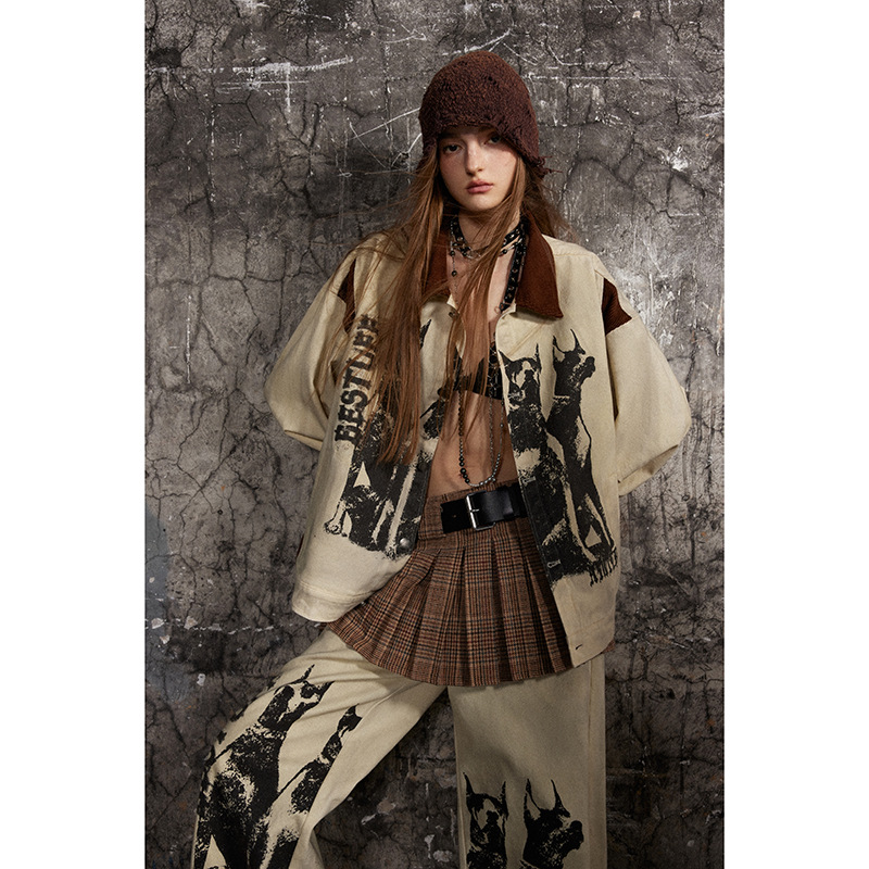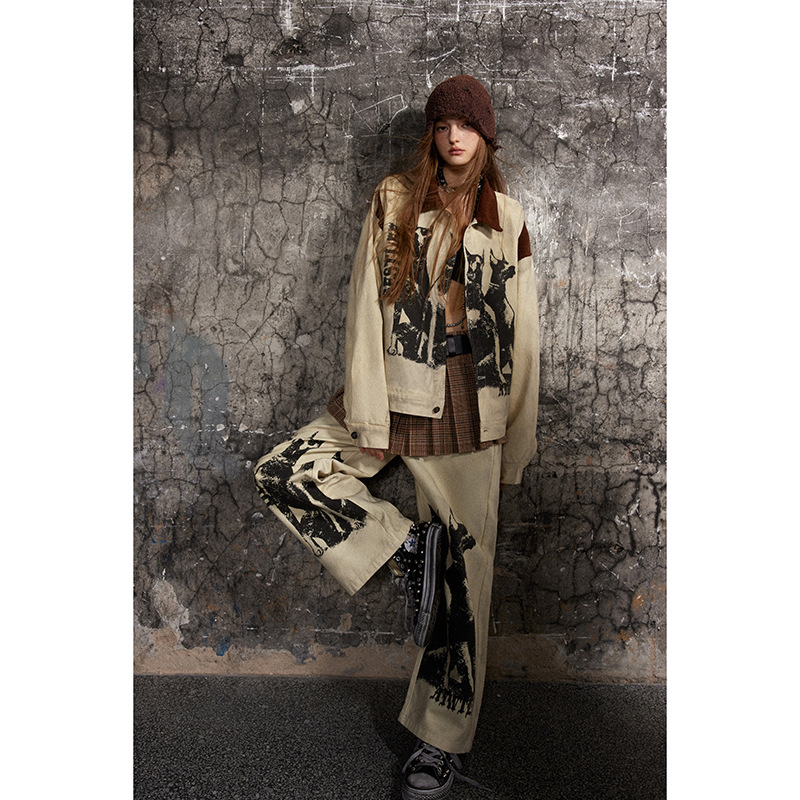 | nameOriginal | [Mu Ma] 2024 Autumn New Washed Dressed Tooling Jacket Women's High Street Fashion Graffiti Printed Jacket |