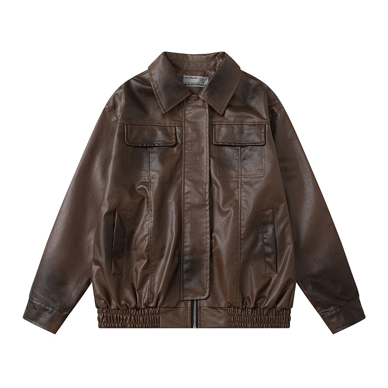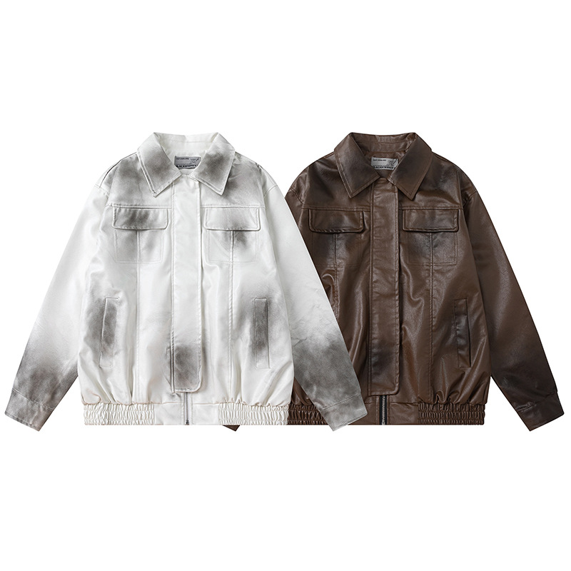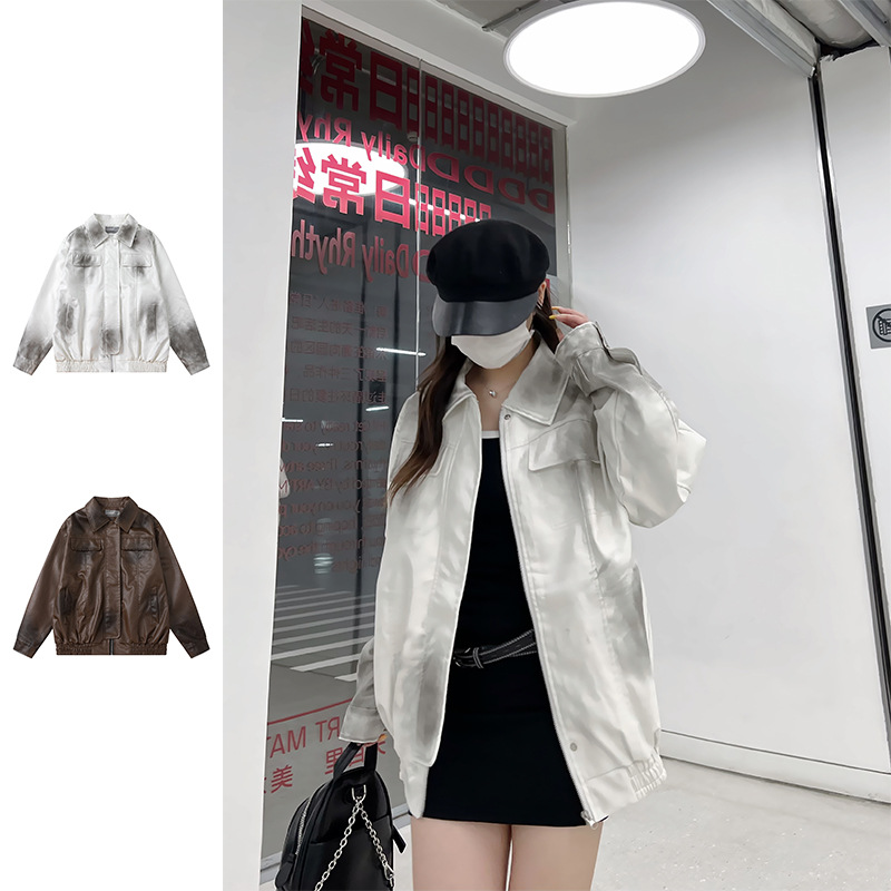 | nameOriginal | [Mu Ma] 2024 Autumn New Washed Spraying Machine Car Style Jacket Women's High Street Fashion Couple Leather Jacket |