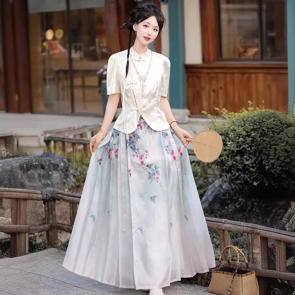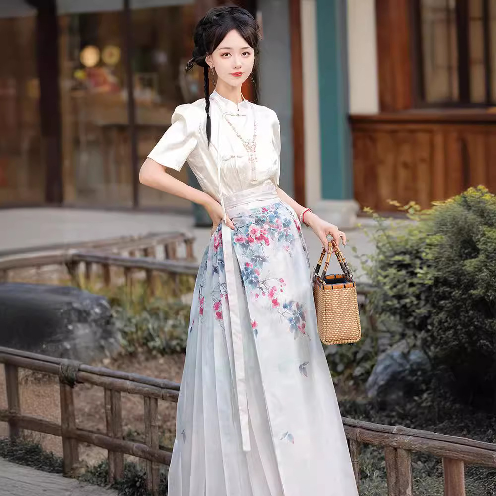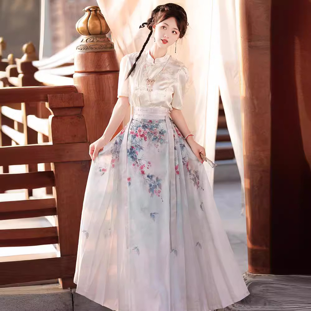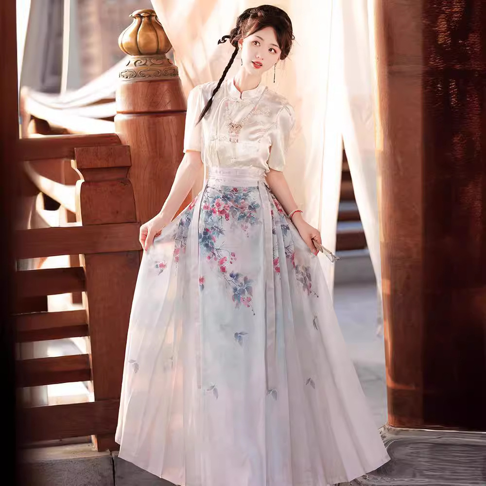 Mu Zhuohua Original Hanfu Women’s Improved Ming Style New Chinese Style National Style Qingleng Style Printed Horse Face Skirt Daily suit Summer