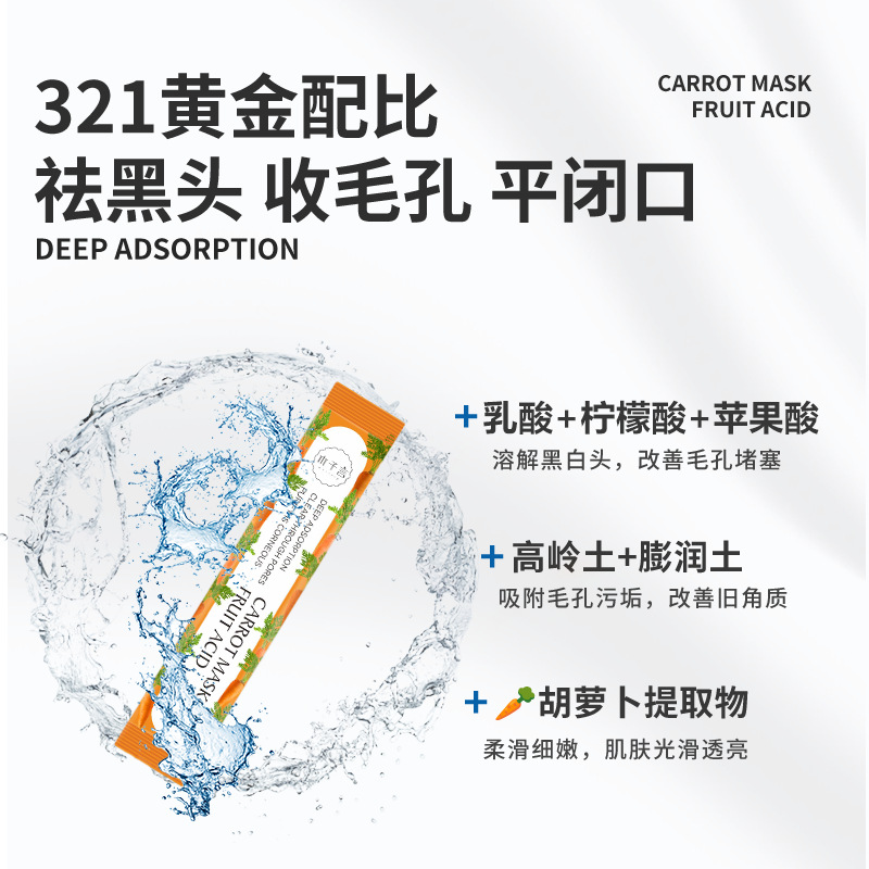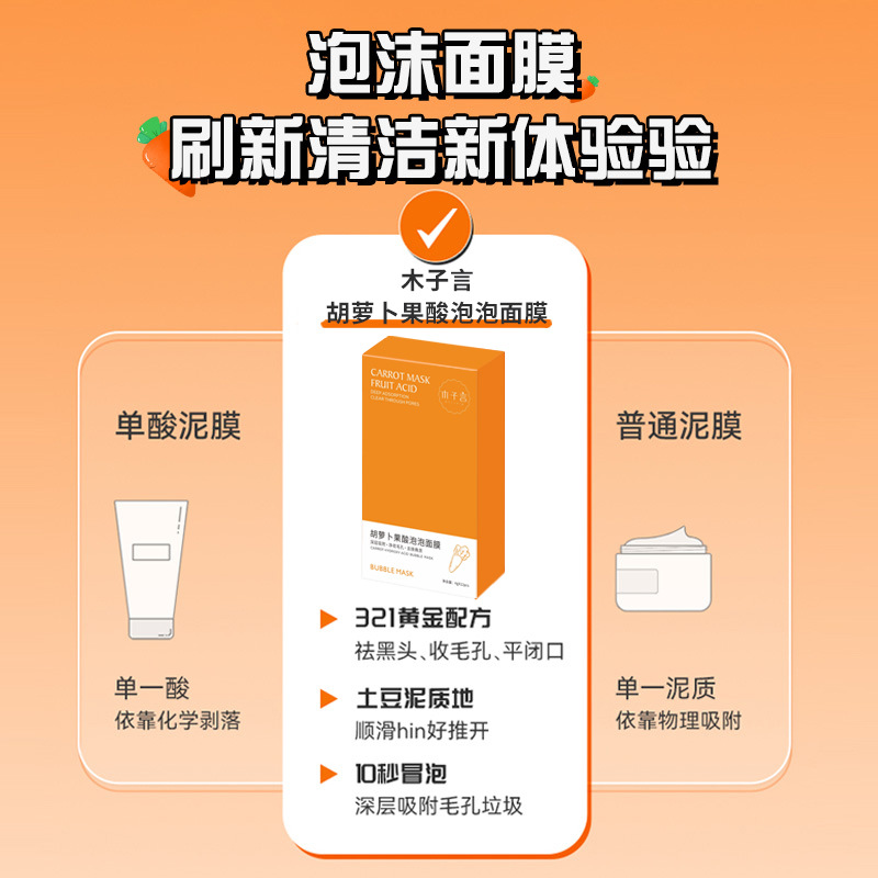 | nameOriginal | Mu Ziyan Carrot Fruit Acid Bubble Mask Centella Asiatica Deep Cleansing Mask Exfoliating |