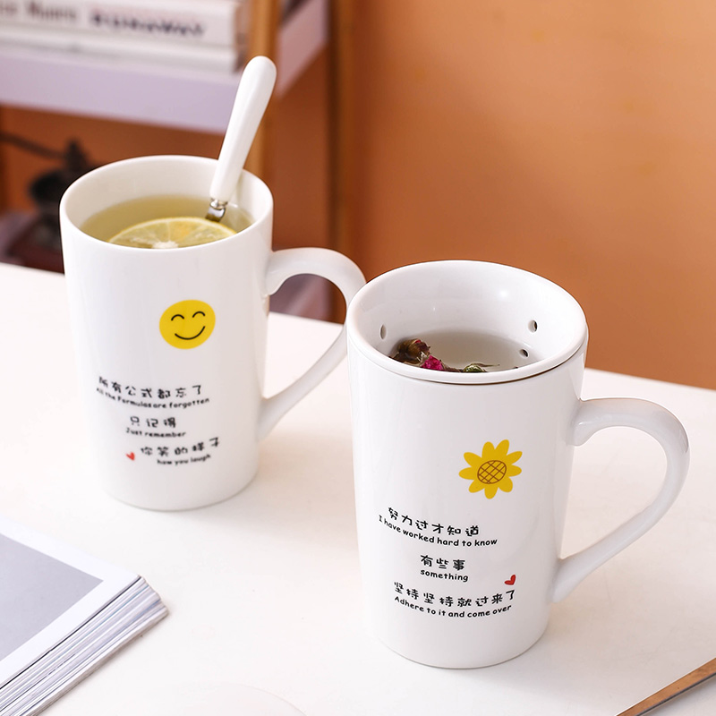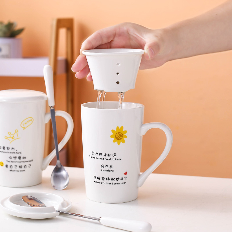Mug Creative Personality Fashion Fresh Cute Cup Ceramic with Lid Spoon Men and Girls Simple Household Coffee Cup