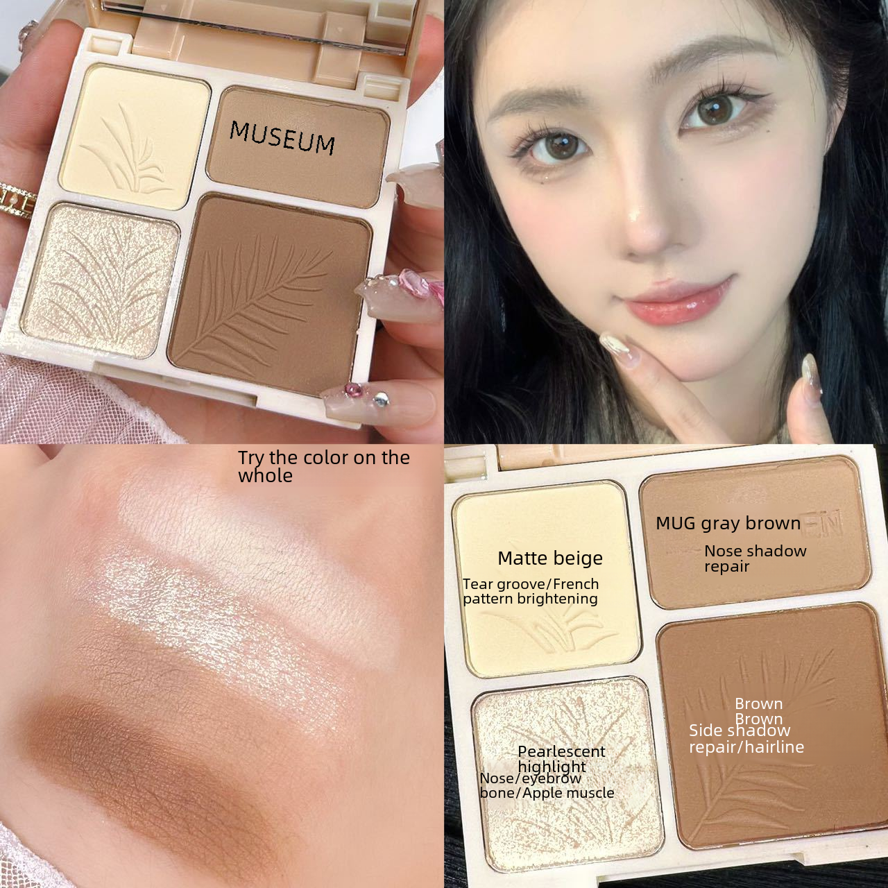 | nameOriginal | MUGE LEEN four-color highlight repair Integrated Plate Matte Pearlescent brightening glitter tear groove nose shadow modification |