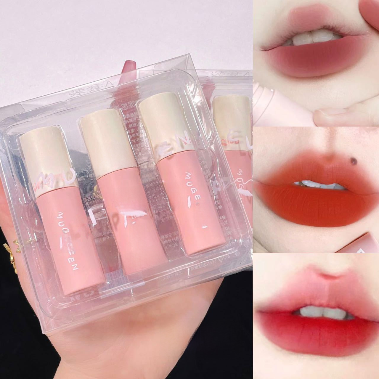 MUGE LEEN Soft Mist Mud Sense Small Powder Tube Lip Glaze Suit Soft Mist Matte White Lip Mud Student Party Parity