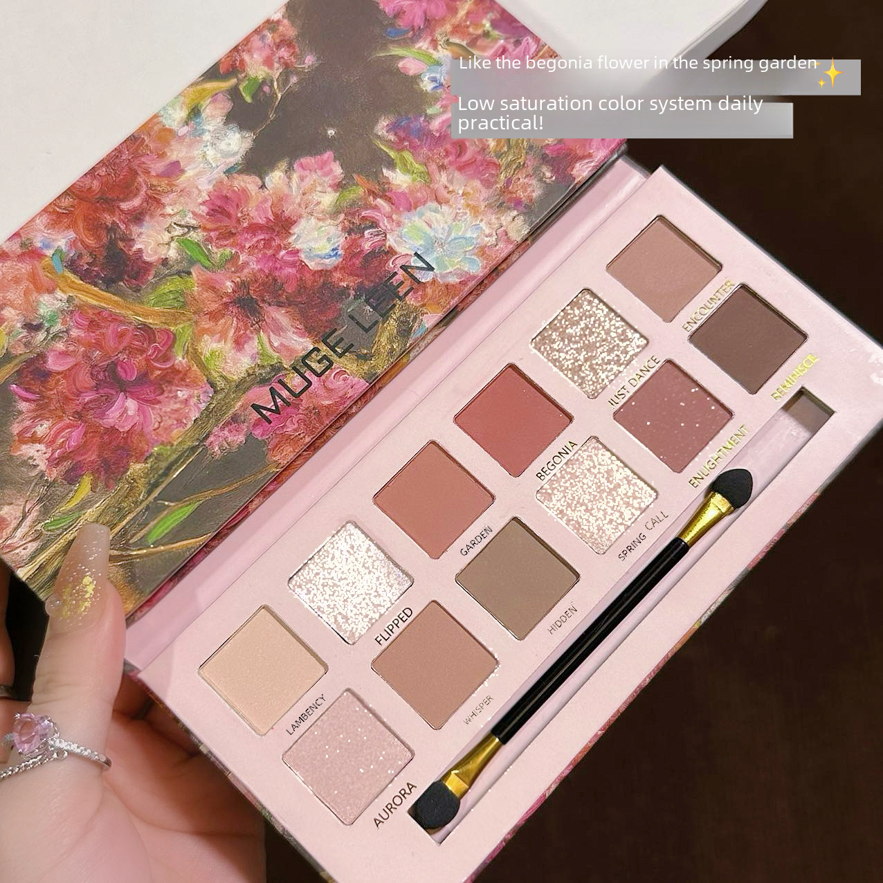 | nameOriginal | MUGE LEEN12 color Begonia flower eyeshadow plate repair lying silkworm blush highlight Integrated Plate pearlescent matte fine flash |