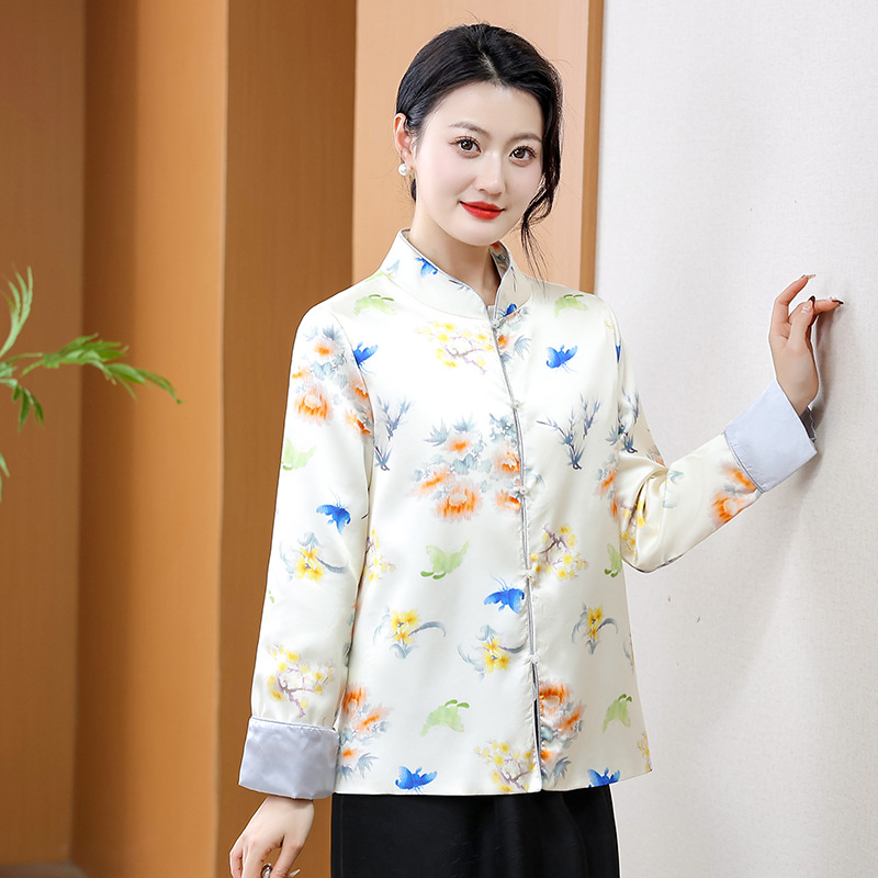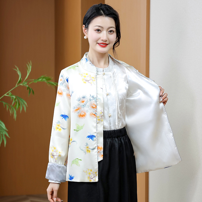 Mulberry Silk Guofeng Top Old Money Style Women's Jacket Retro Long Sleeve Cardigan New High-end Jacquard Top