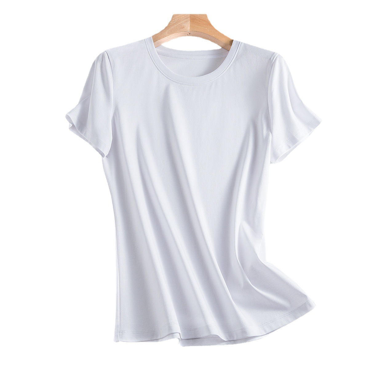 Mulberry Silk Mercerized Cotton T-shirt Women’s Loose Simple Basic Round Neck Slim-fit Slimming Short-sleeved Women’s White T-shirt