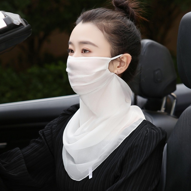 Mulberry Silk Women’s Extra-large Sunscreen Mask Sunshade Ultra-thin Breathable UV Protection Summer Mask Double-layer Silk Black