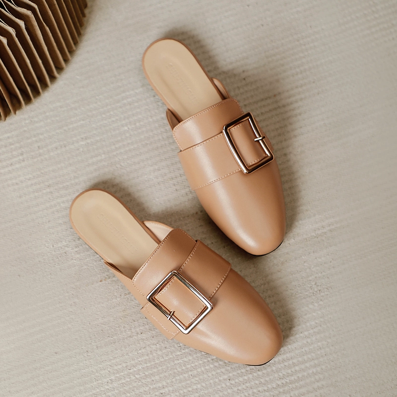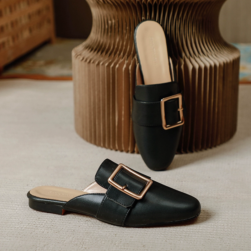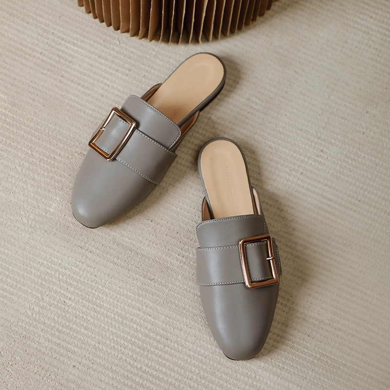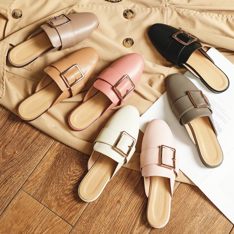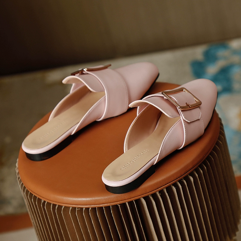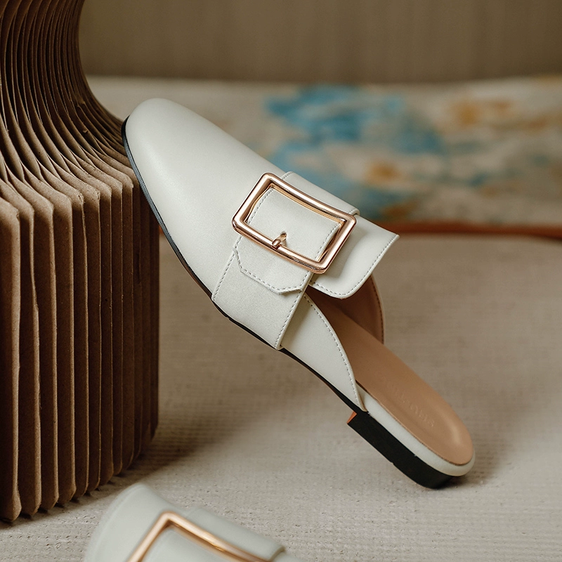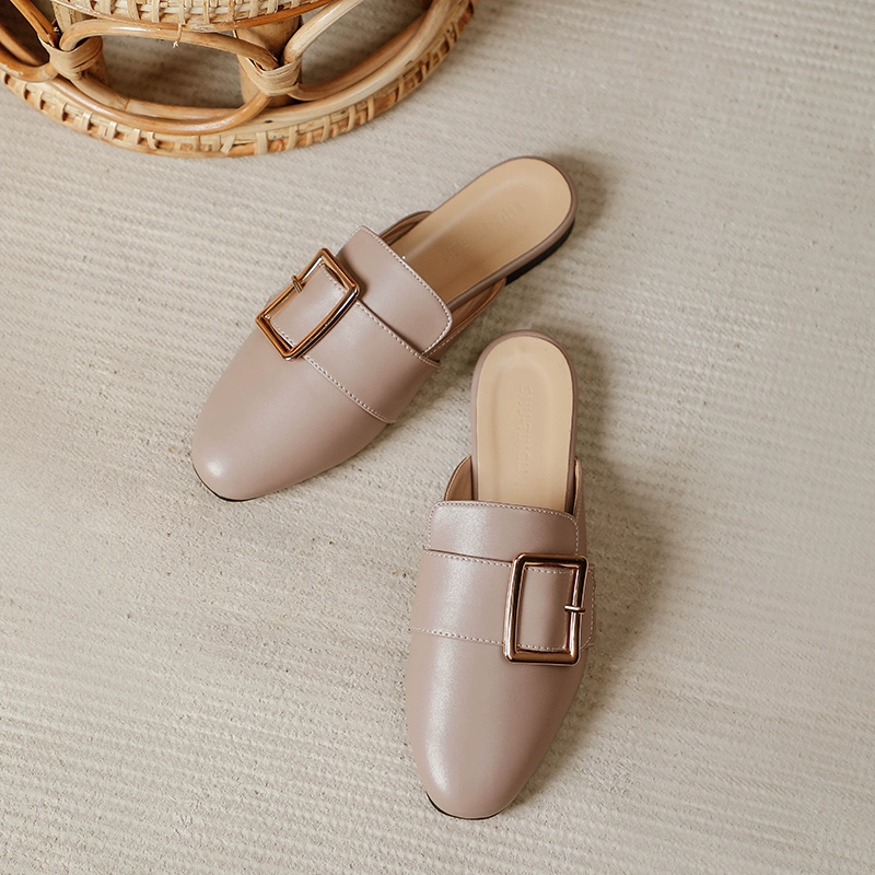 | nameOriginal | Muller half slippers women's summer outer wear 2024 new Baotou square buckle sandals genuine leather Internet celebrity lazy retro flat shoes |