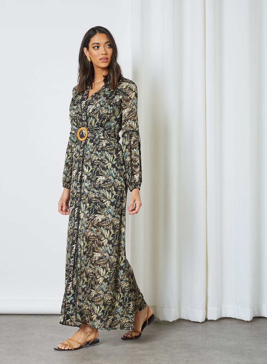 This versatile dress can be dressed up or down effortlessly with a pair of heels or sandals. It features a flattering V-neckline and long sleeves, with an eye-catching all-over print. The dress falls to a maxi length, providing a stylish and comfortable fit. Crafted from soft and comfortable fabric, this dress is easy to care for and can be washed according to the care label instructions.