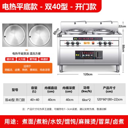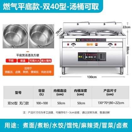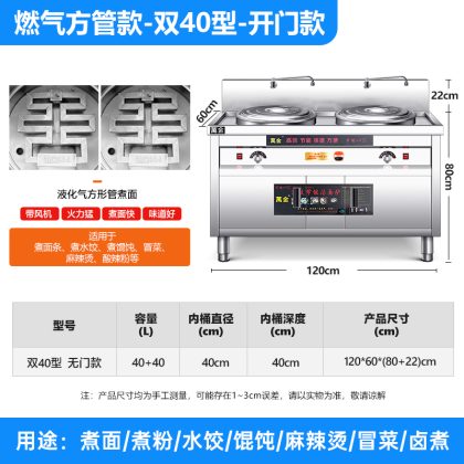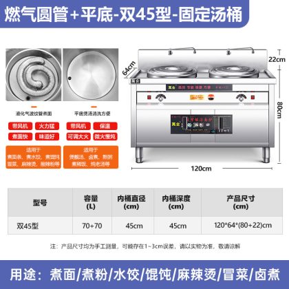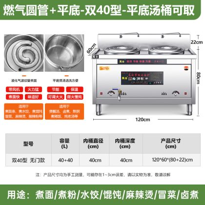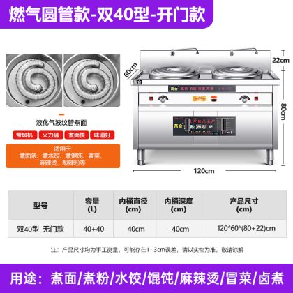 | nameOriginal | Multi-functional Double-head Noodle Cooking Oven Commercial Electric Heating Gas Noodle Cooking Barrel Double Barrel Malatang Pot Maocai Noodle Soup Cooking Powder Oven |