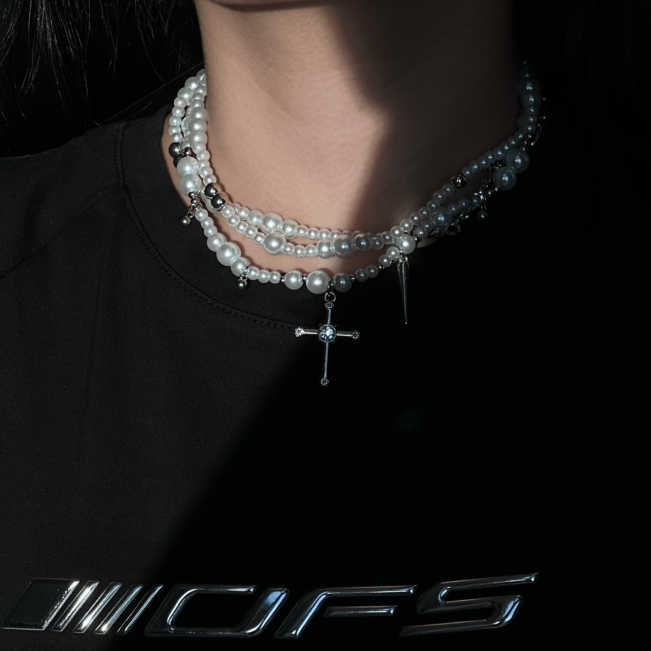 | nameOriginal | Multi-layered cross rivets trendy men's and women's hip-hop pearls |