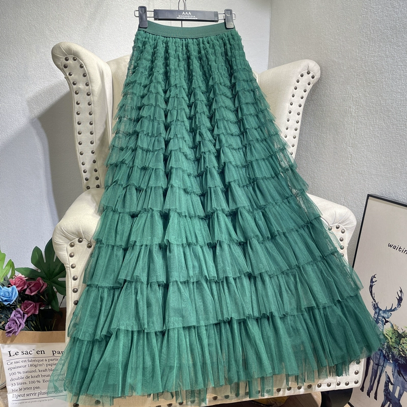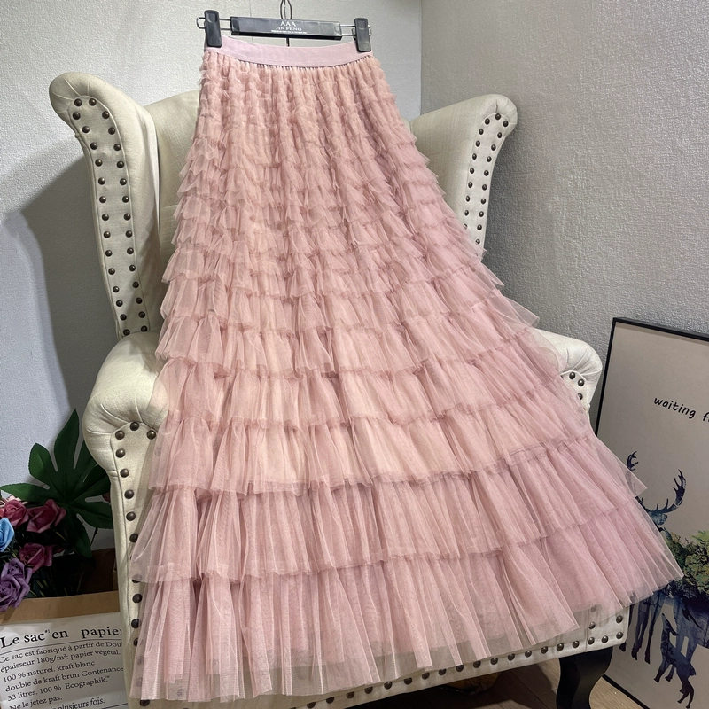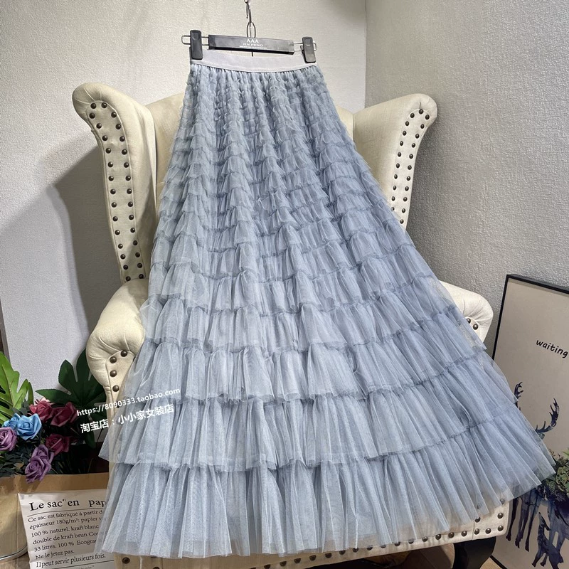 | nameOriginal | Multi-layered patchwork cake pleated puffy long skirt mesh |