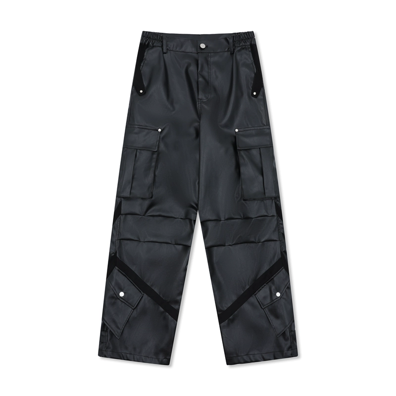 Multi-pocket glossy men’s and women’s niche functional loose leather pants