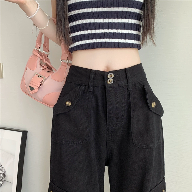 Multi-pocket loose large size floor-length retro cargo pants