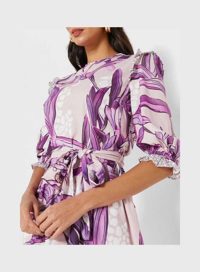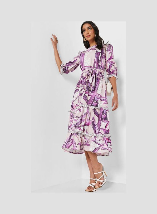 | nameOriginal | Belted Printed Ruffle Detail Dress Multicolor |