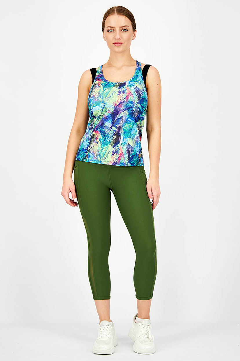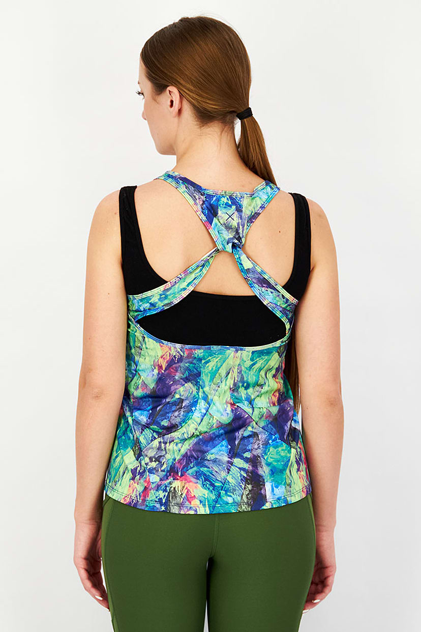 Multicolor Twist Tank Top with Allover Print for Women’s Sportswear.