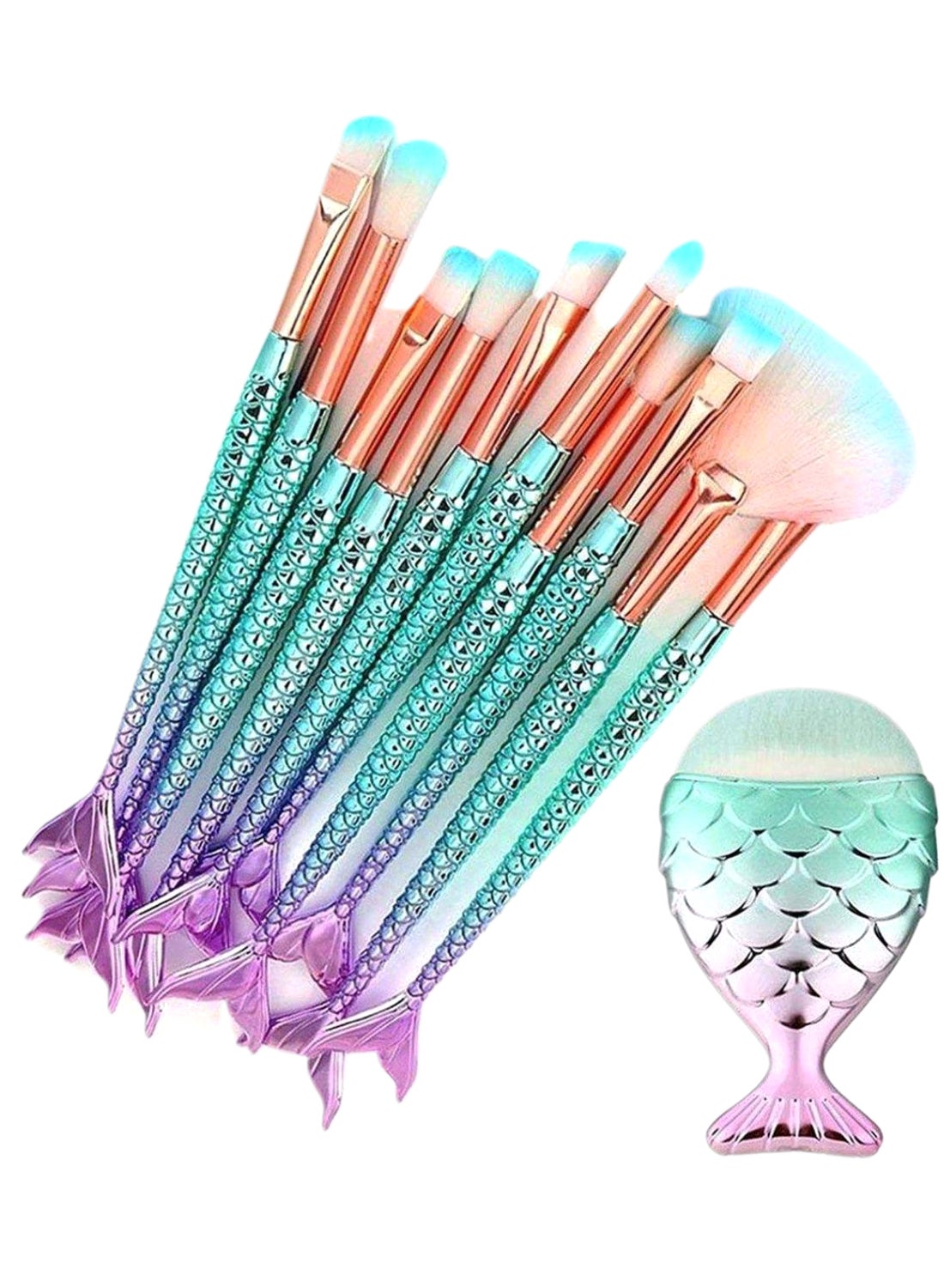 11-Piece 3D Mermaid Shape Makeup Brush Set Multicolour