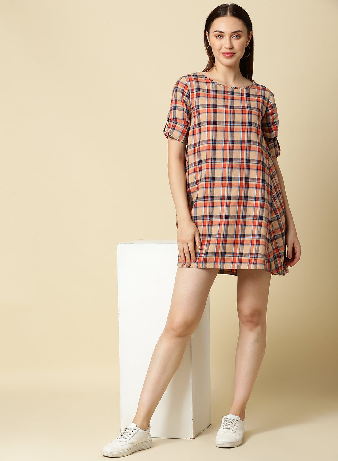 Introducing our stunning Checkered Mini Dress in Multicolour! This dress is the perfect addition to your wardrobe for any occasion. The checkered pattern in a variety of vibrant colours creates a fun and playful look, while the mini length adds a touch of flirtiness. The dress is made from high-quality materials that are both comfortable and durable, ensuring that you can wear it time and time again. The fitted design hugs your curves in all the right places, while the short sleeves and round neckline provide a classic and timeless look. Whether you’re dressing up for a night out or keeping it casual for a daytime event, this Checkered Mini Dress is sure to turn heads and make you feel confident and stylish.