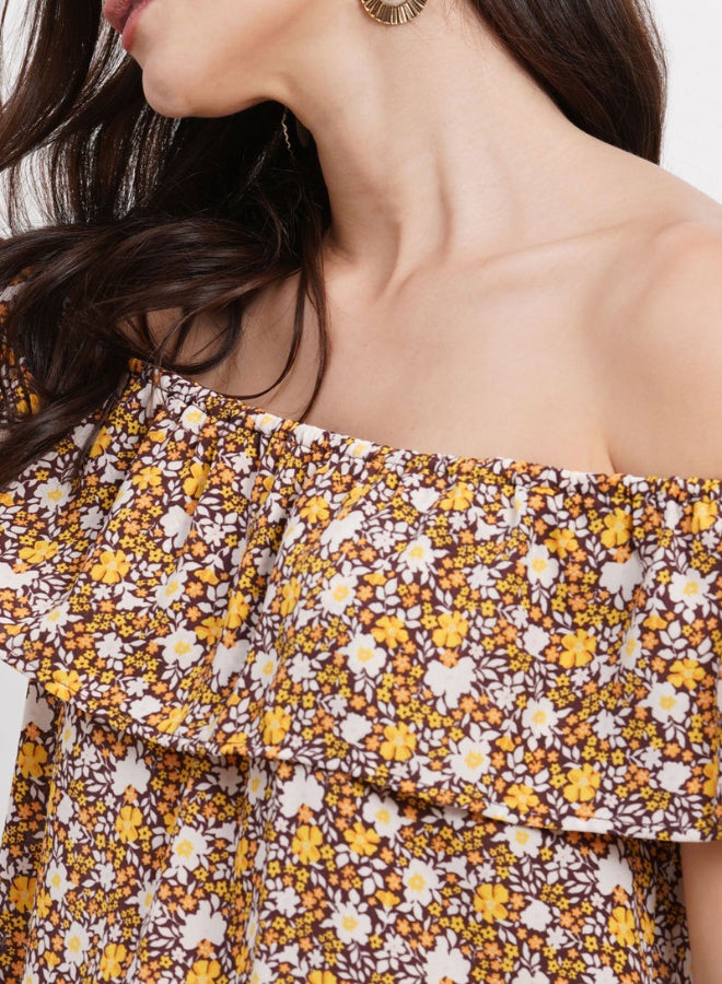 Floral Printed Off Shoulder Top Multicolour