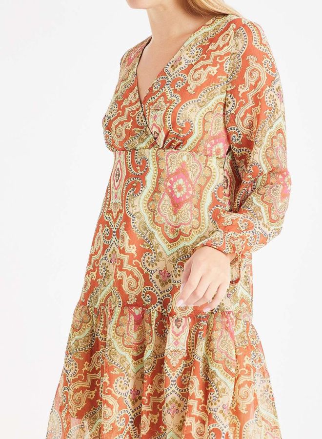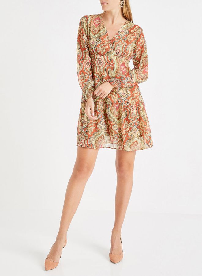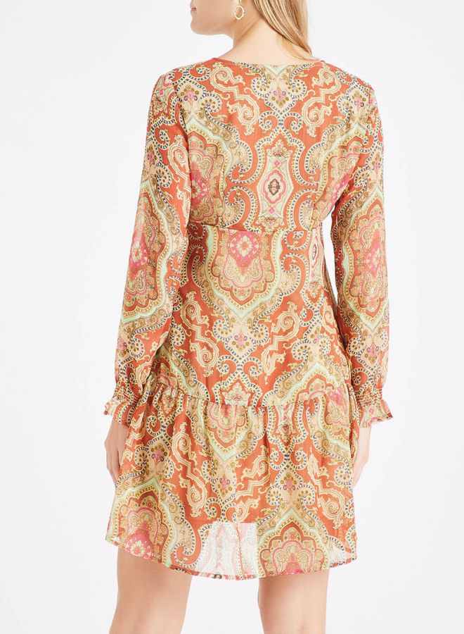 Printed Drop Waist Polyester Dress Multicolour
