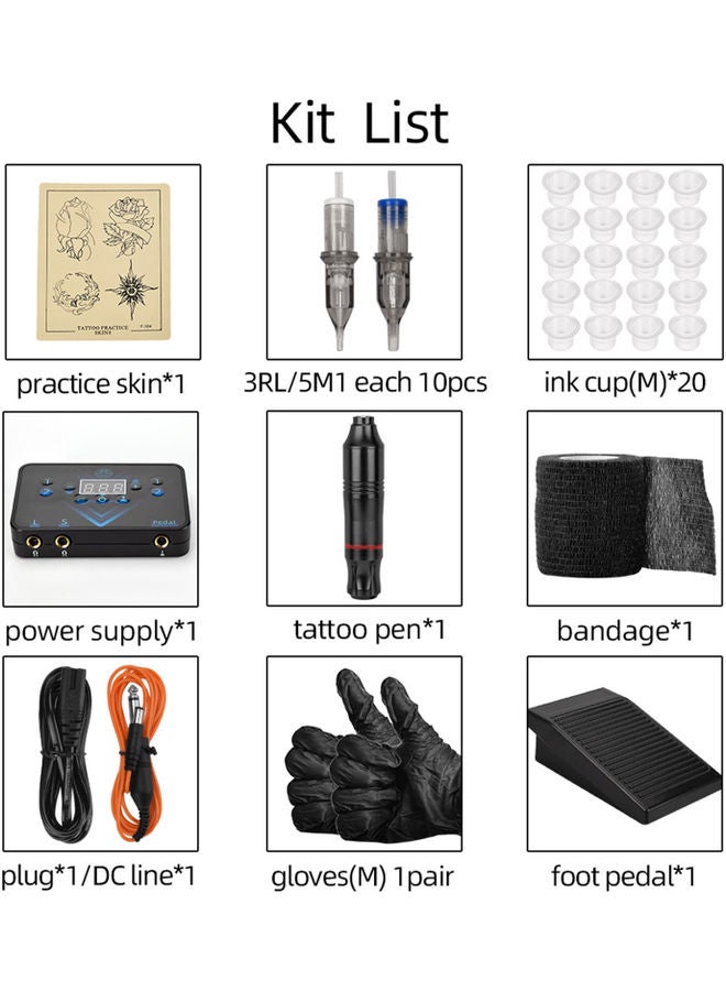 The kit also includes a variety of multicolored tattoo inks that are vibrant and long-lasting. These inks are made of high-quality ingredients that are safe for use on all skin types. Additionally, the kit comes with a set of needles, grips, and other accessories that are essential for creating stunning tattoos.