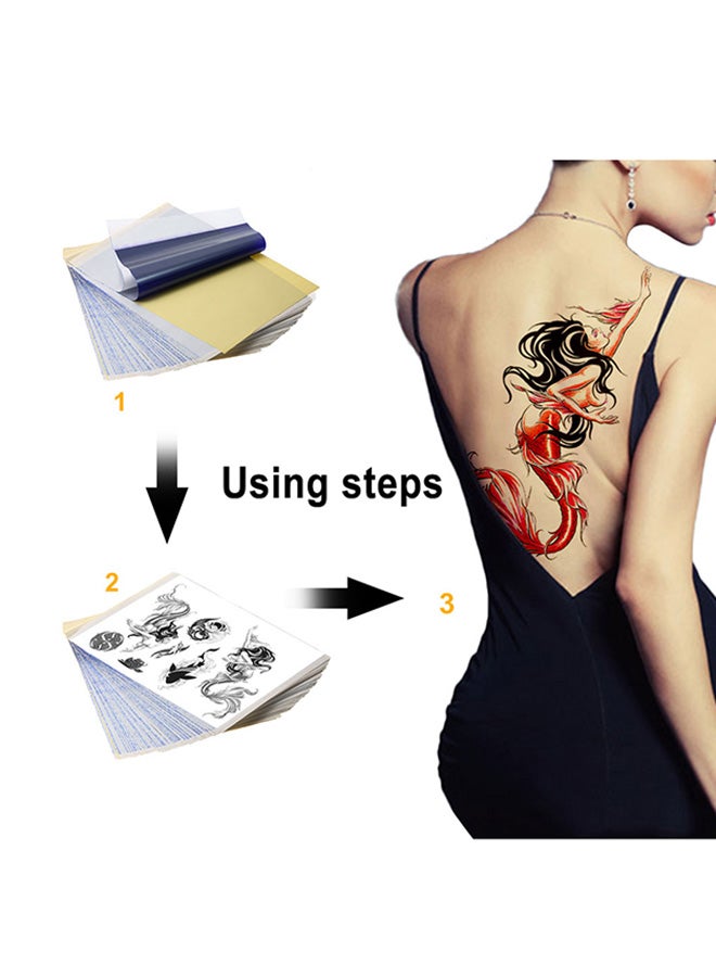 This is a top-quality tattoo stencil transfer paper that is perfect for transferring your designs onto the skin. It is an essential tool for any professional tattoo artist. The paper has a high transfer effect, making it easy to transfer your flash onto the skin. You can use it with a thermal copier or freehand, depending on your preference. It is incredibly easy and convenient to use, making it a must-have for any tattoo artist.