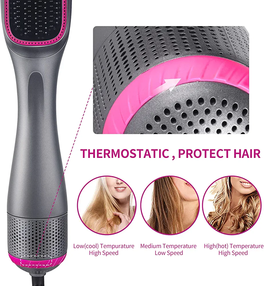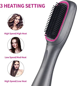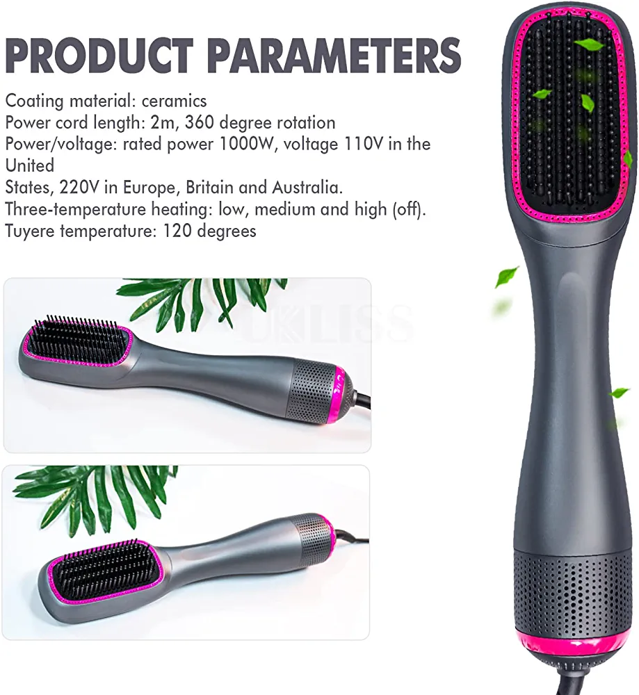 This hot air brush is perfect for straightening, curling, and styling your hair with ease. Its unique design allows you to create a variety of hairstyles, from sleek and straight to bouncy curls. The brush features a ceramic coating that evenly distributes heat, preventing damage to your hair.
