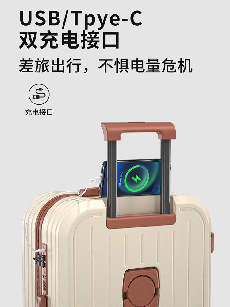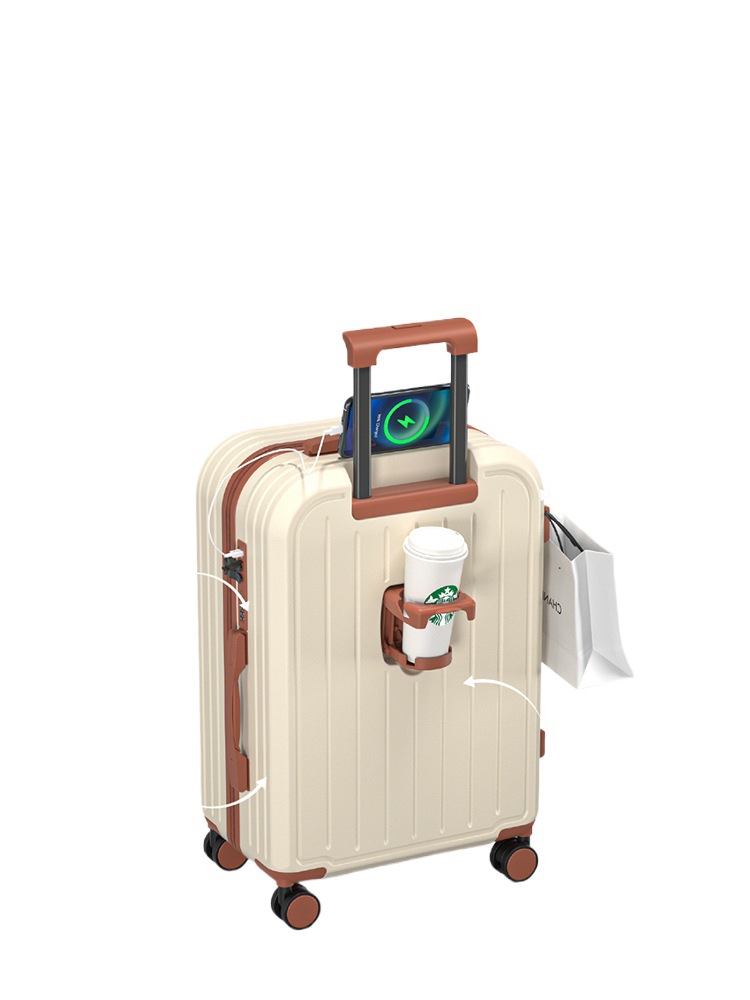 | nameOriginal | Multifunctional luggage case 20 inch new cup holder trolley case charging suitcase 24 male and female student password leather case |