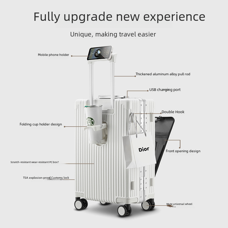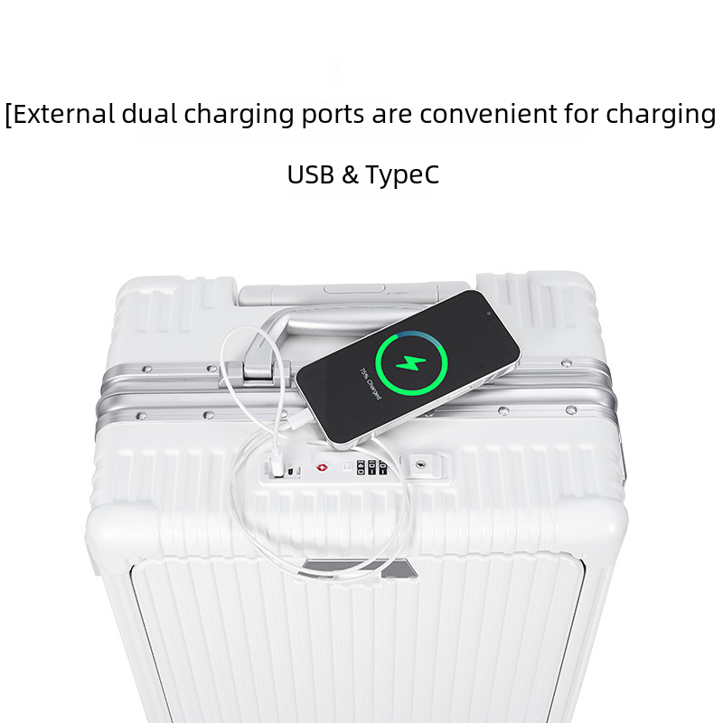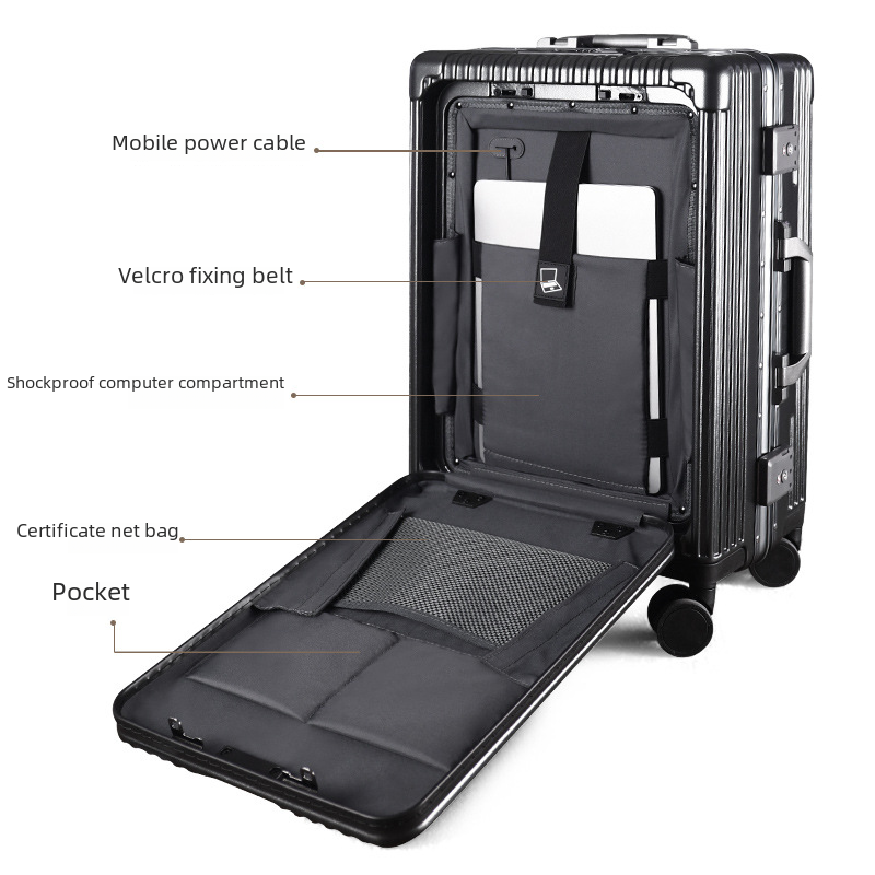 | nameOriginal | Multifunctional luggage case front opening boarding case pc aluminum frame password trolley case 20 inch universal wheel charging suitcase |