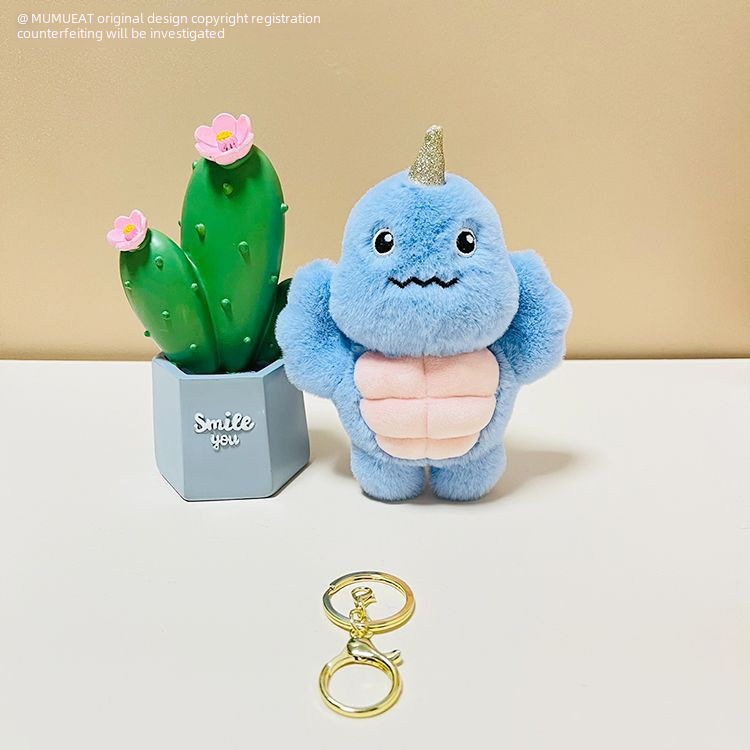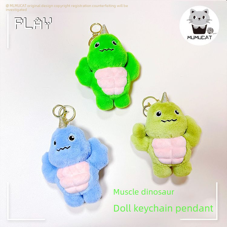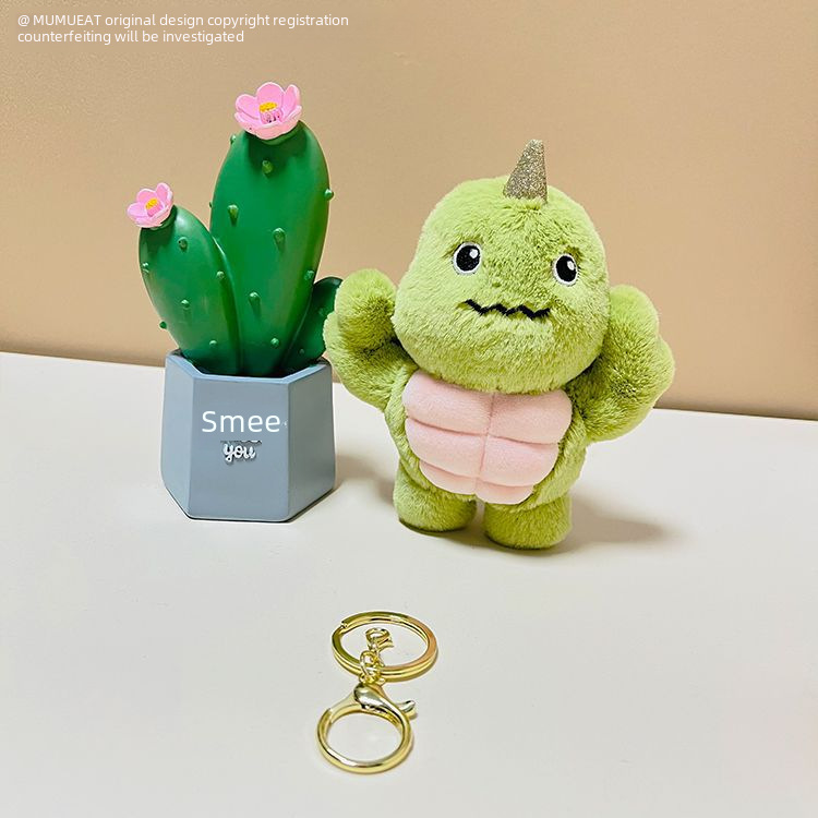 Muscle Dinosaur Plush Pendant Cartoon Little Monster Keychain Decorative Doll Toy Car Keyring Wholesale