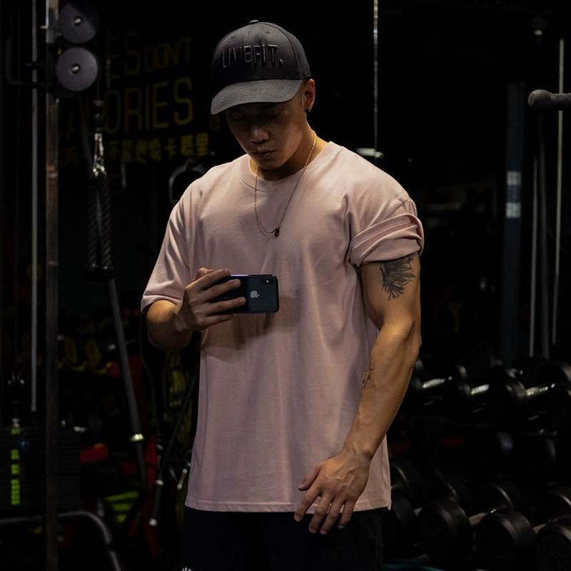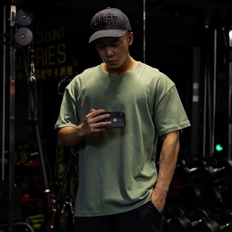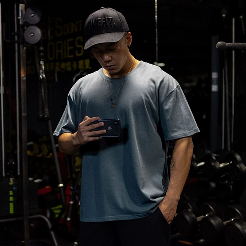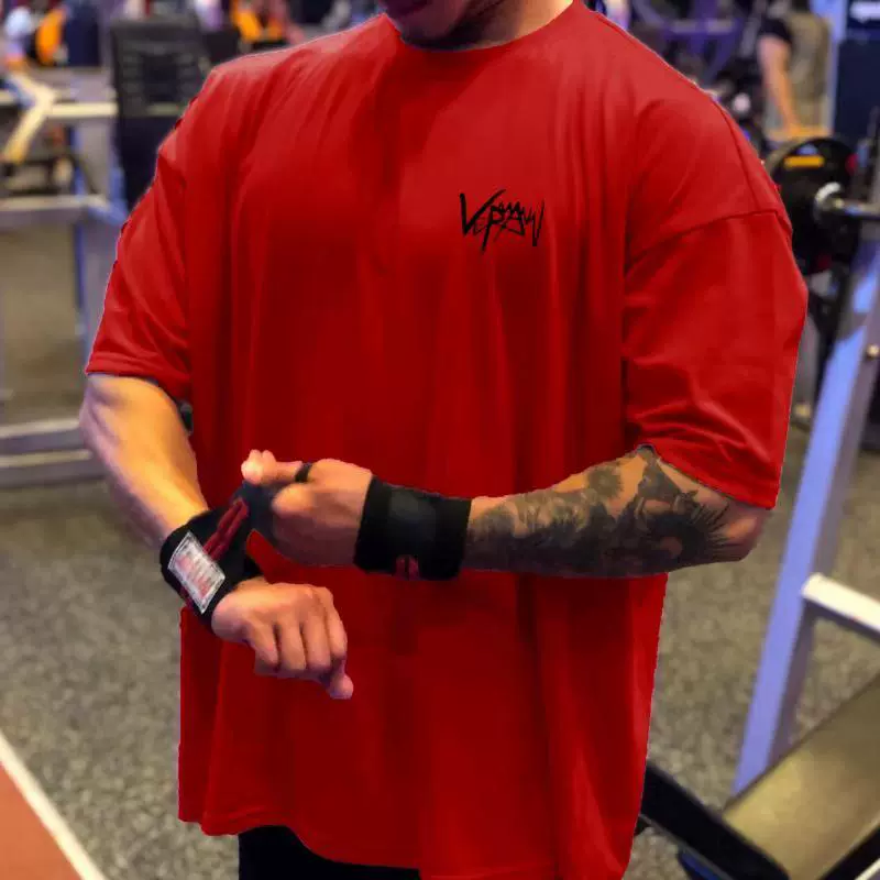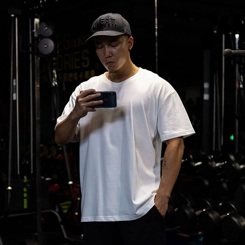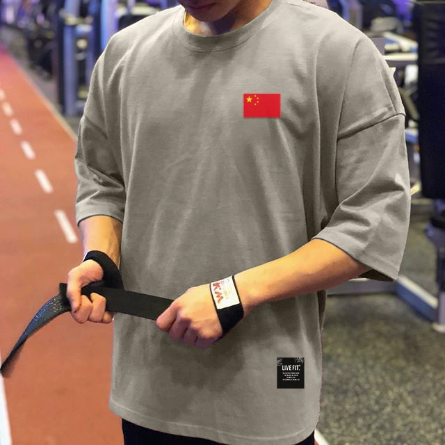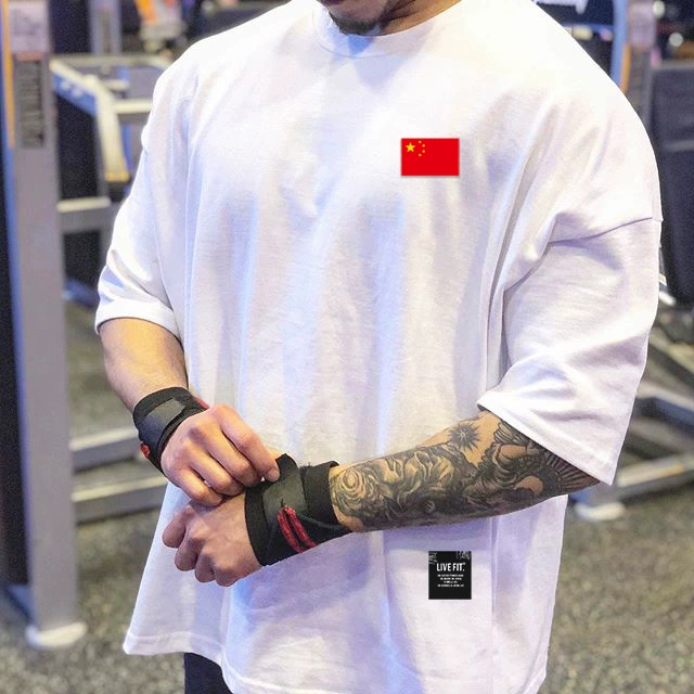 | nameOriginal | Muscle sports short-sleeved T-shirt for men, pure cotton, fat man, large size, five-quarter sleeve fitness clothes, loose half-sleeved, breathable summer |