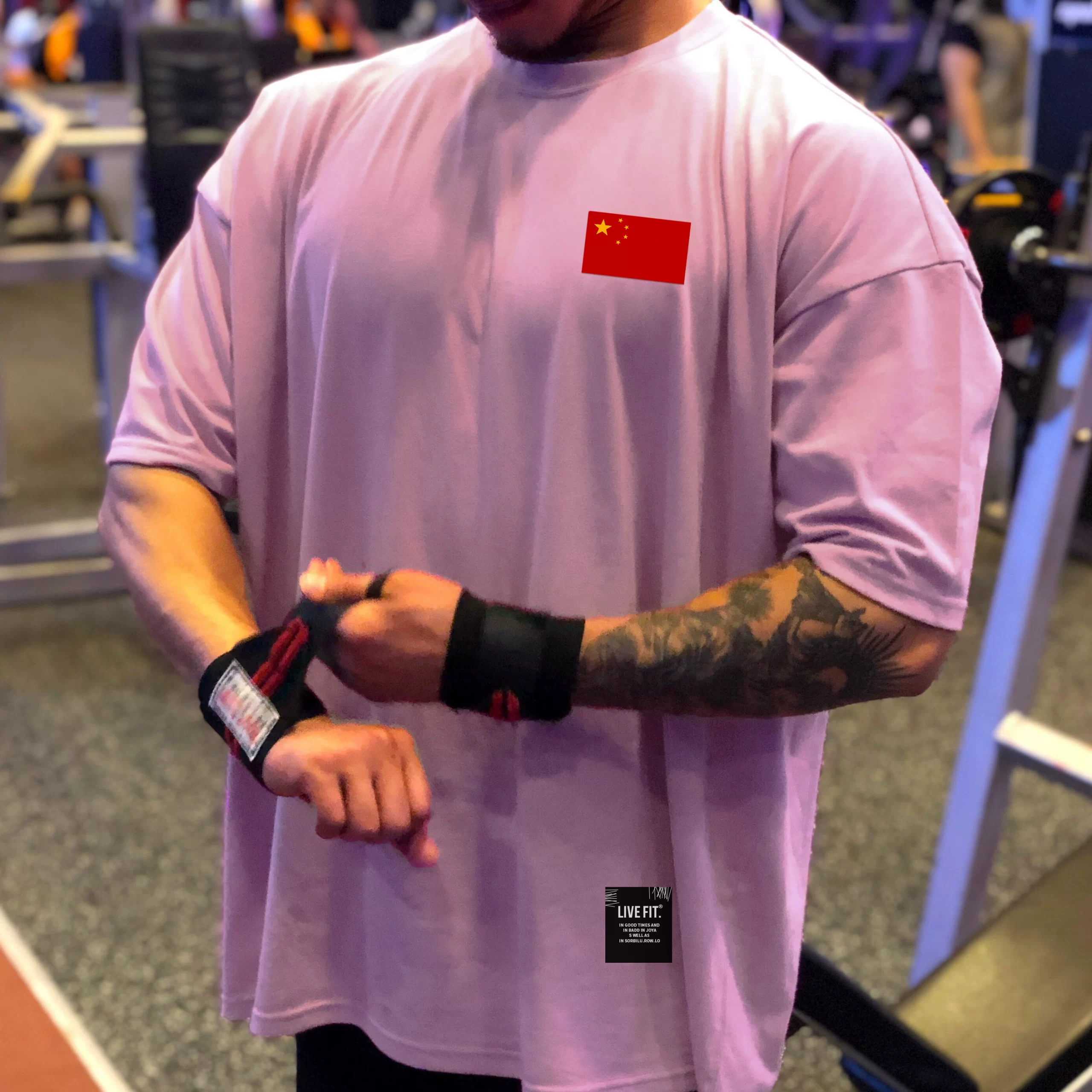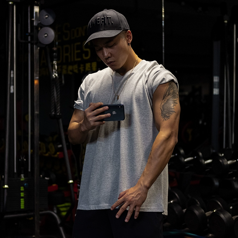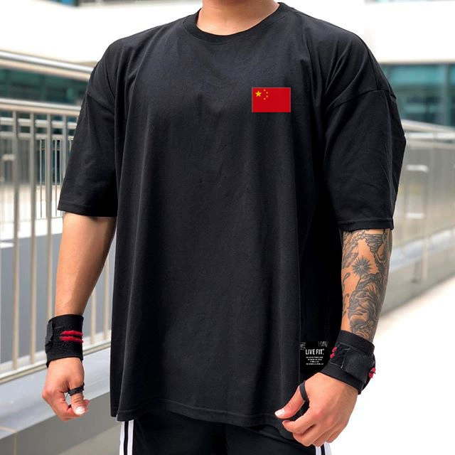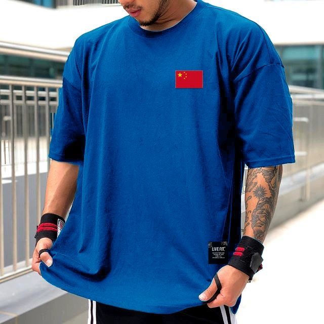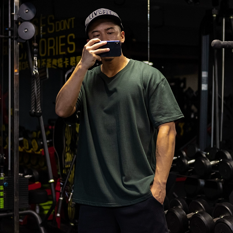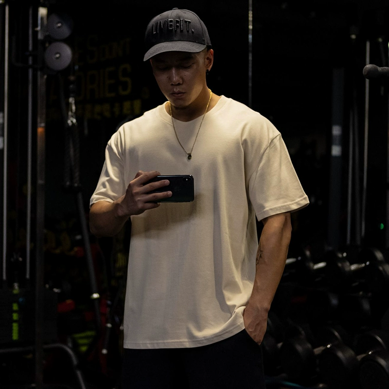 | nameOriginal | Muscle sports short-sleeved T-shirt for men, pure cotton, fat man, large size, five-quarter sleeve fitness clothes, loose half-sleeved, breathable summer |