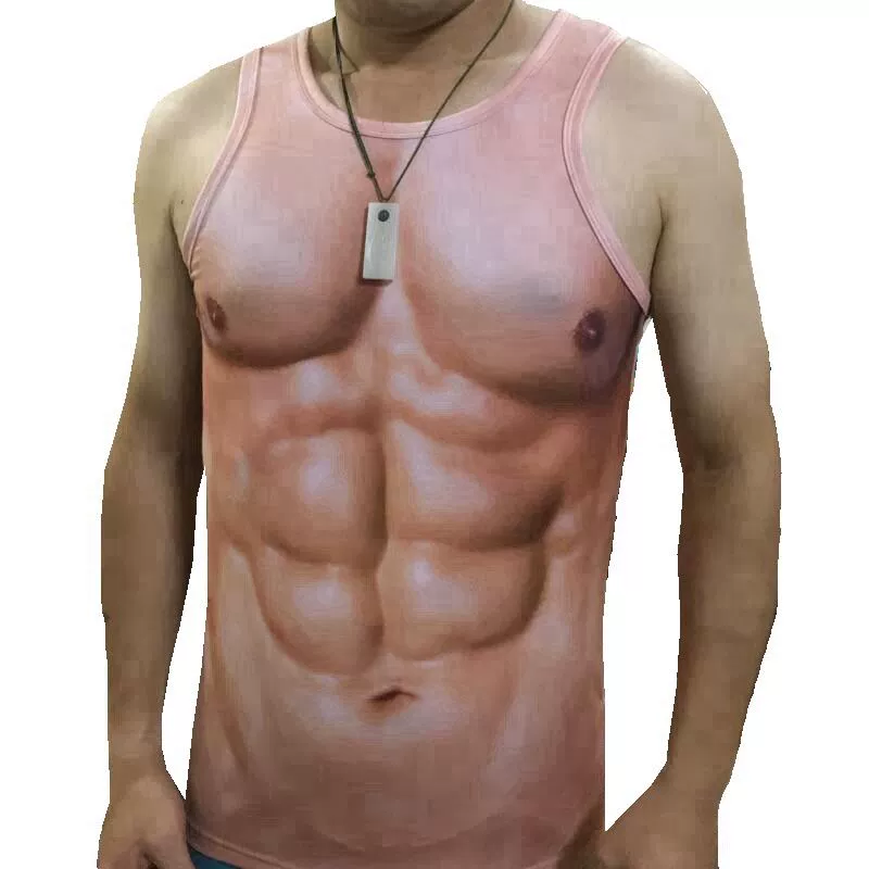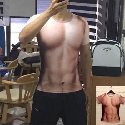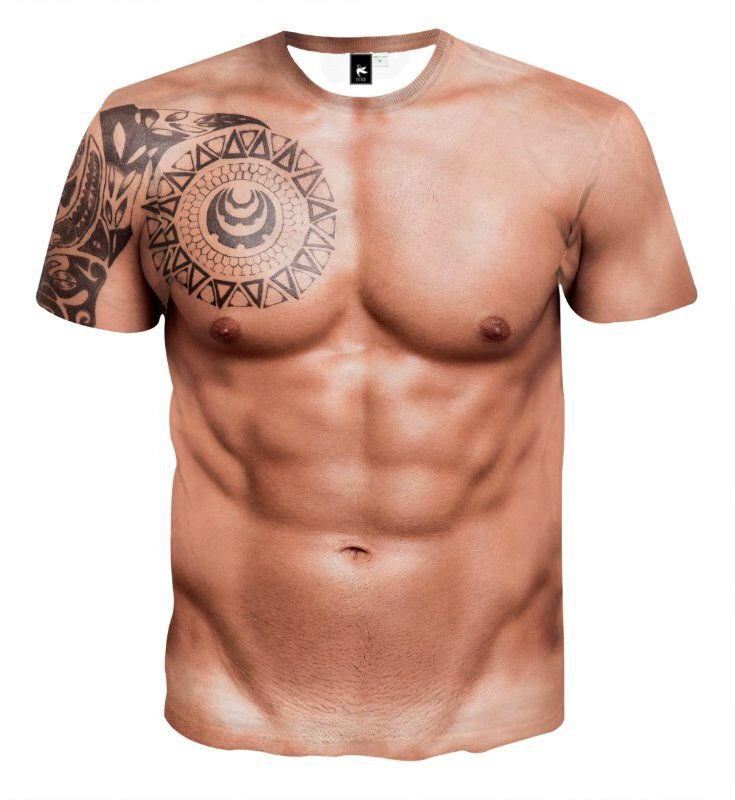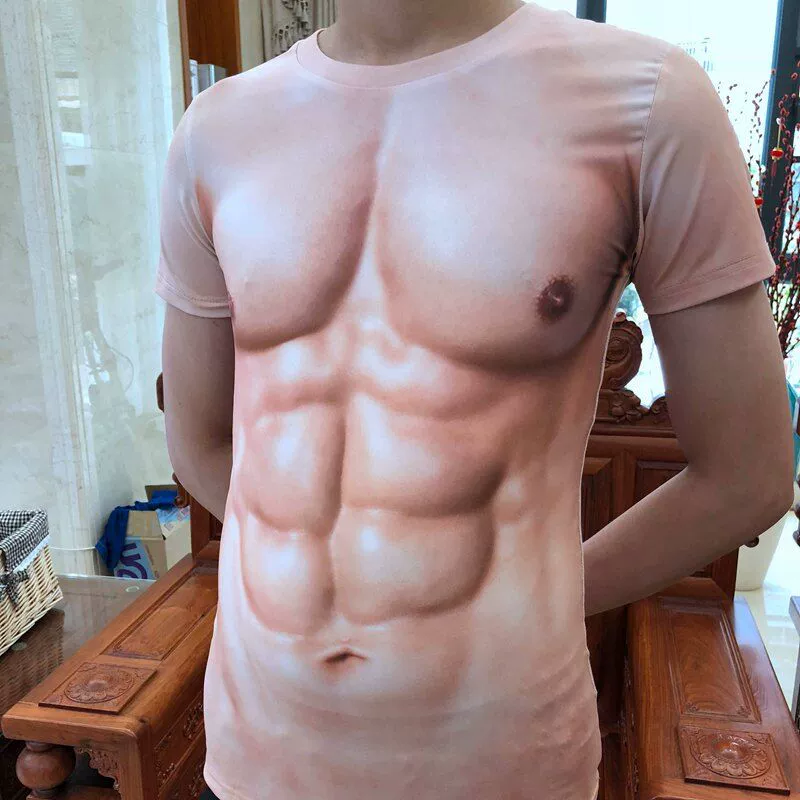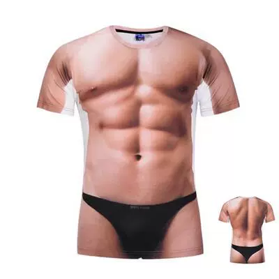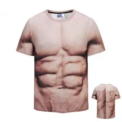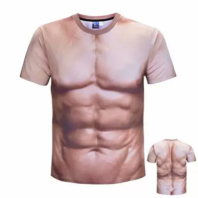 | nameOriginal | Muscular man T-shirt fake 6-pack fake chest and abdominal muscles creative personality short-sleeved funny 3D funny skin color |