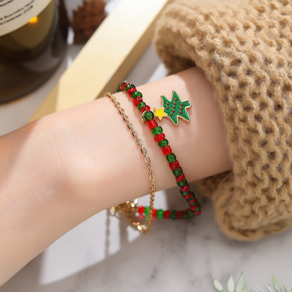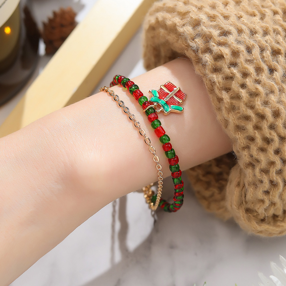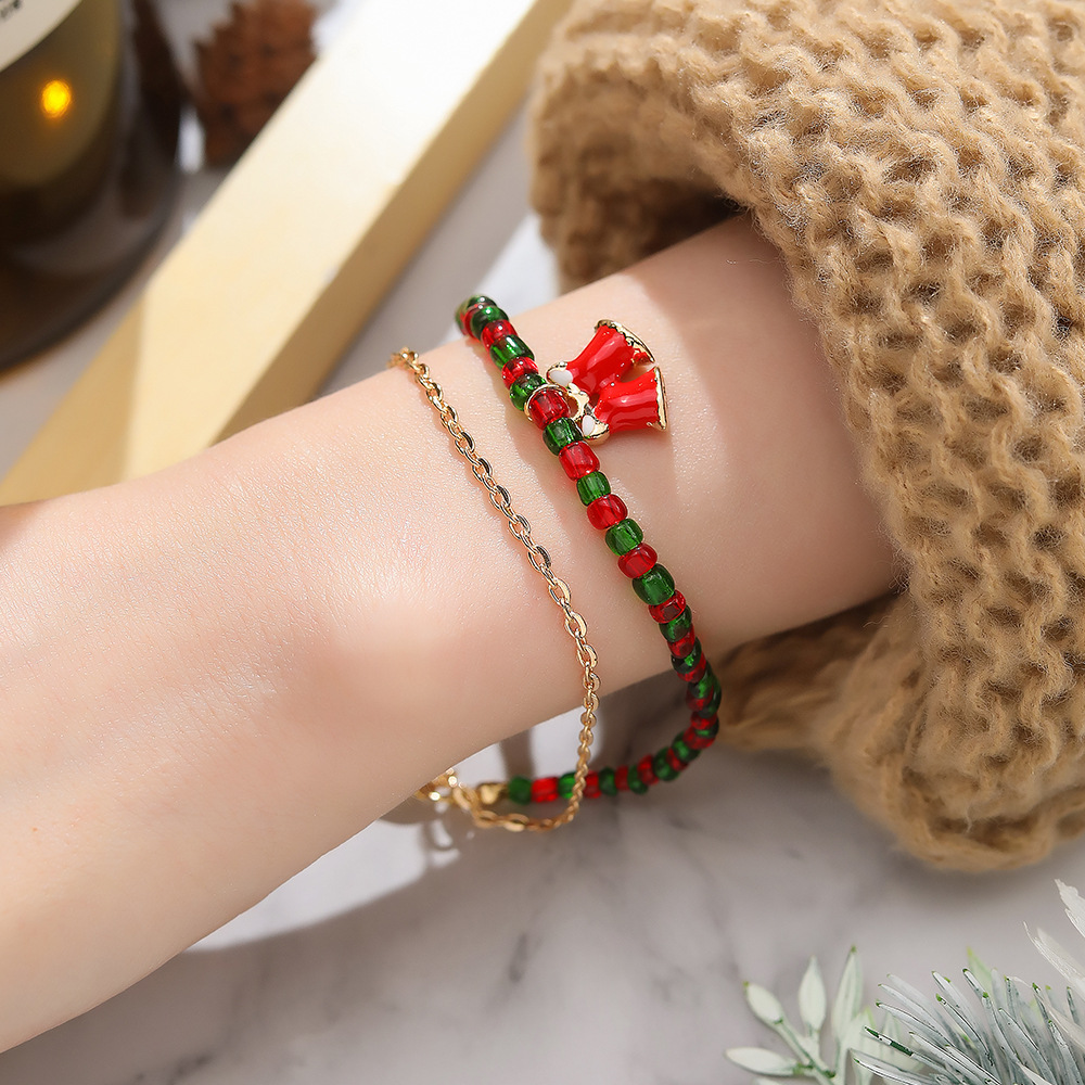 Mushang cross-border new Christmas double-layer bracelet female Christmas bell gift box sweet high sense bracelet wholesale