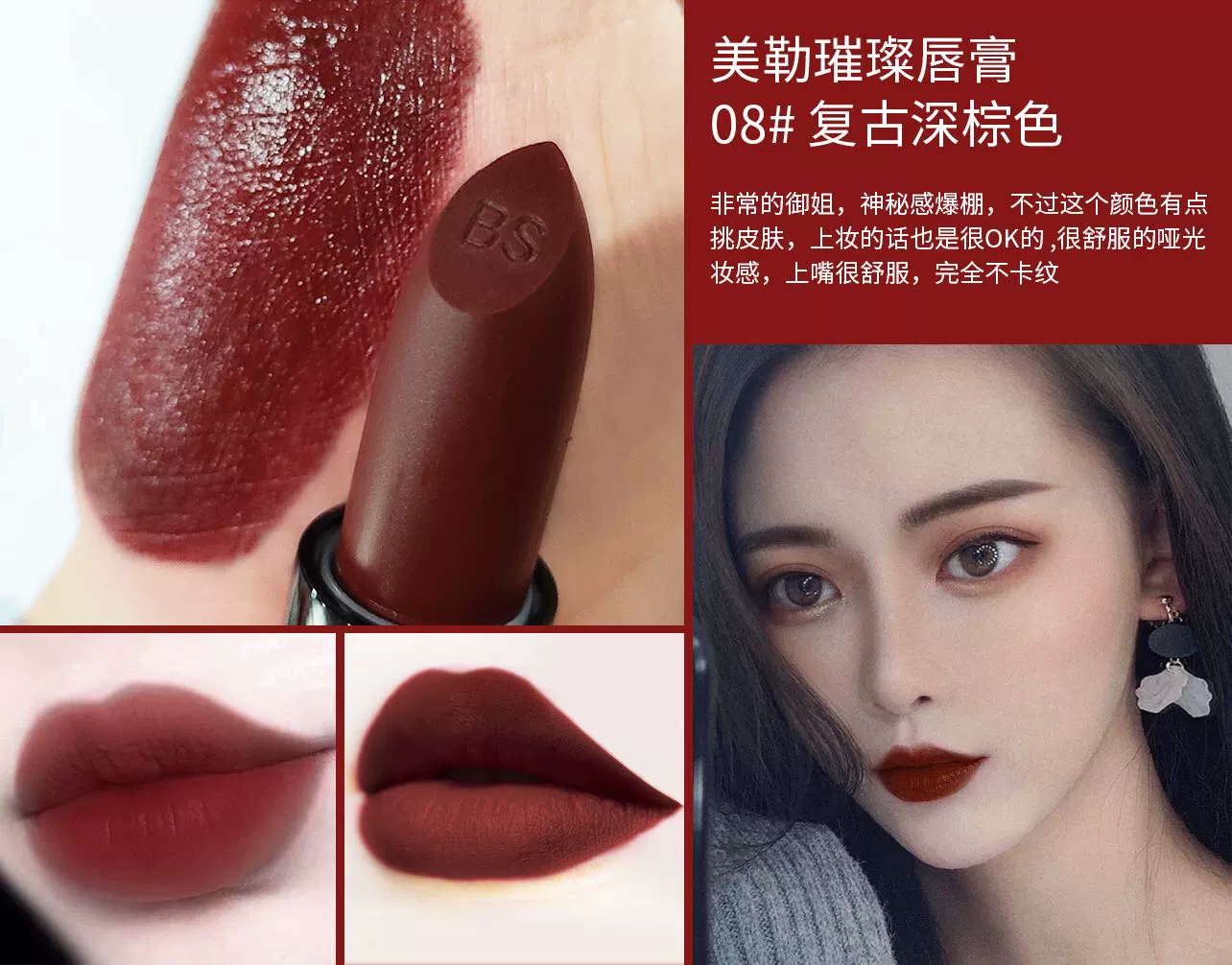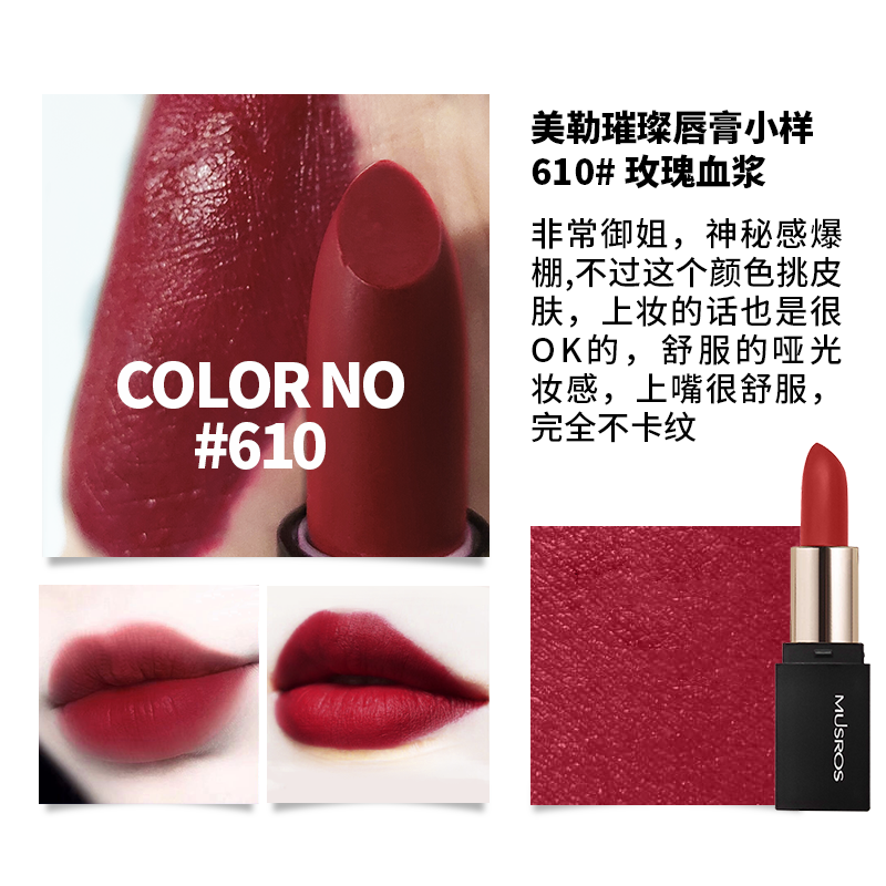MUSROS Meiler Heart-beating Bright Lipstick Lipstick Official Authentic Matte Lipstick Matte Women's Premium Color