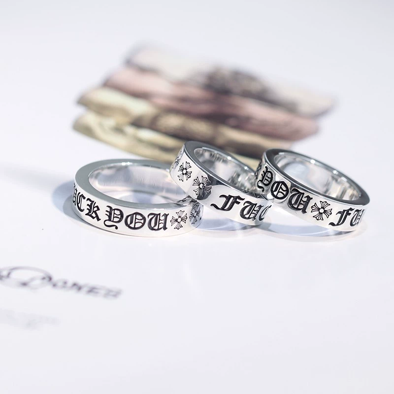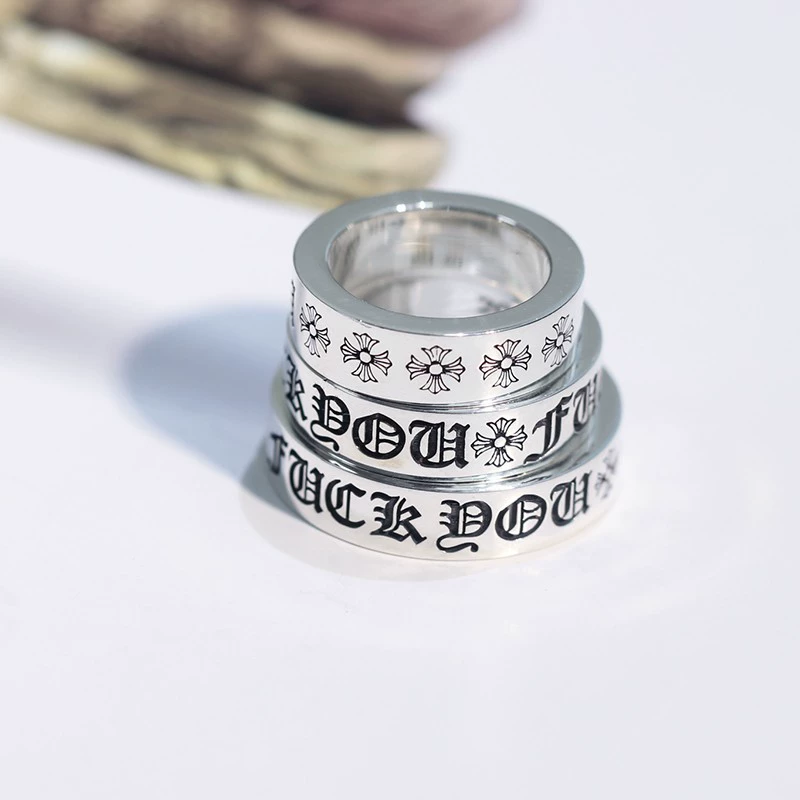 | nameOriginal | Mustang Manor 925 silver 3mm 6mm wide version narrow version fuck curse words forever cross ring 925 silver ring |