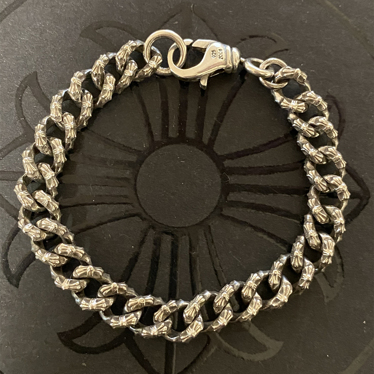 | nameOriginal | Mustang Manor handmade 925 silver cross lobster clasp bracelet retro European and American Cuban chain fine cross bracelet |