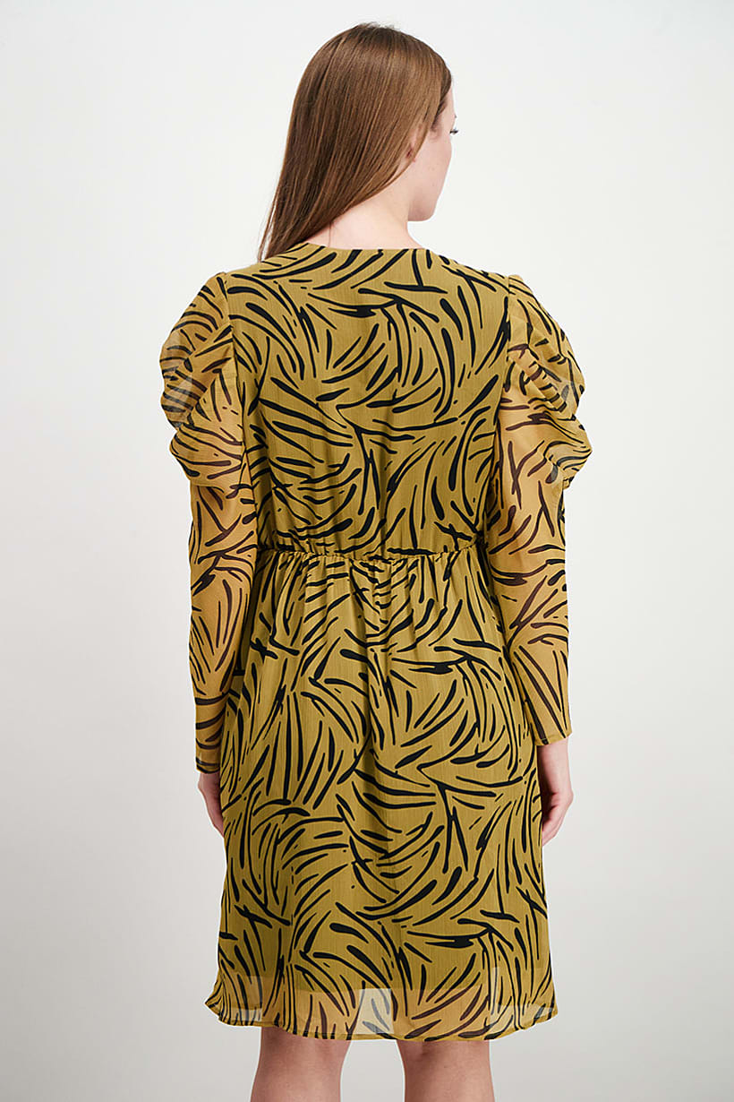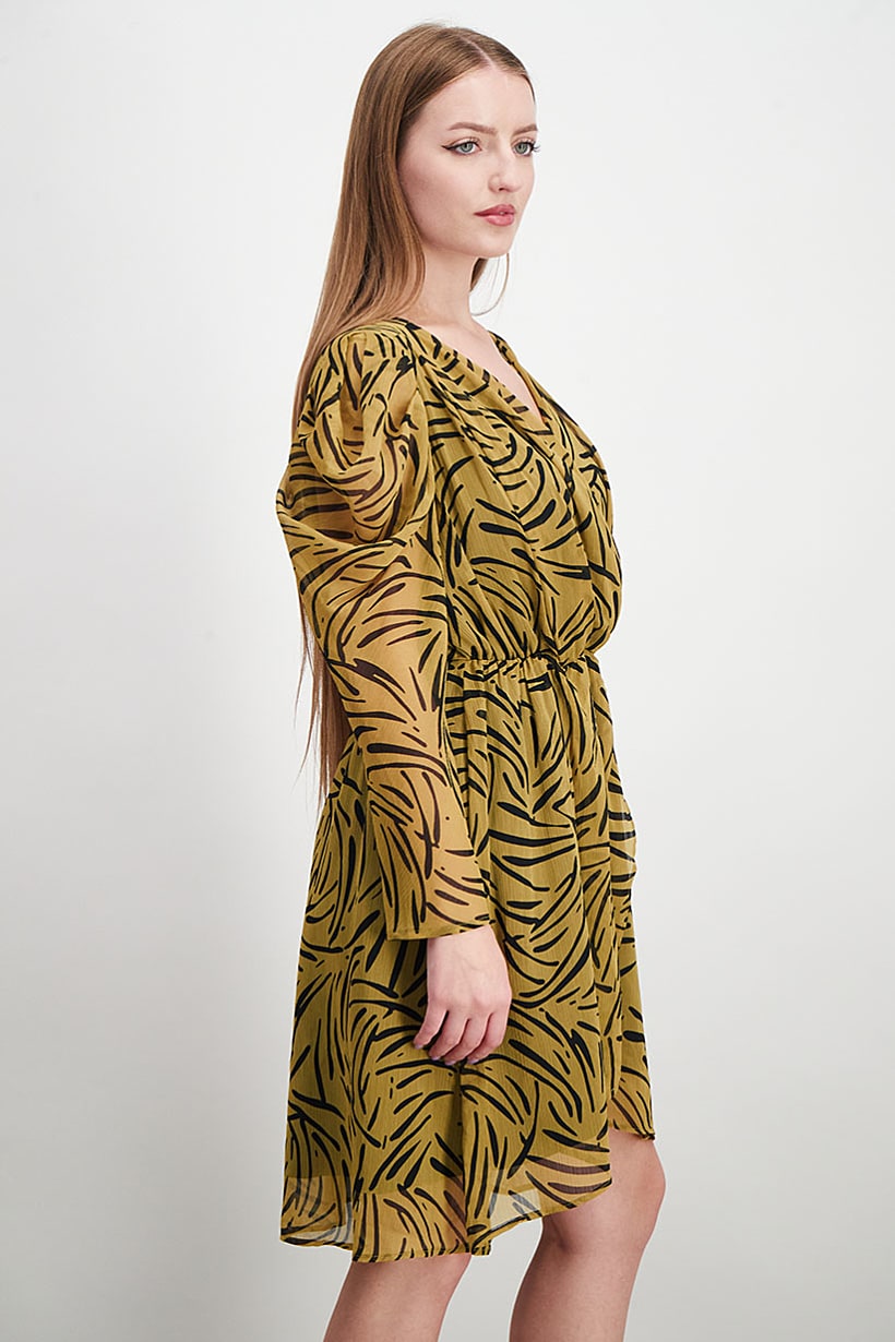 | descriptionOriginal | Care : Machine washable, Dress Style : Mini, Fit : Regular fit, Size shown : EU, Types of Hem : Straight hem, Types of Neckline & Collar : V-neckline, Types of Sleeve : Longsleeve, Fabrics : 100% Polyester, Occasion : Casual, Pattern & Print : Textured pattern, Types of Closures : Pullover, Color Family : Yellow, |